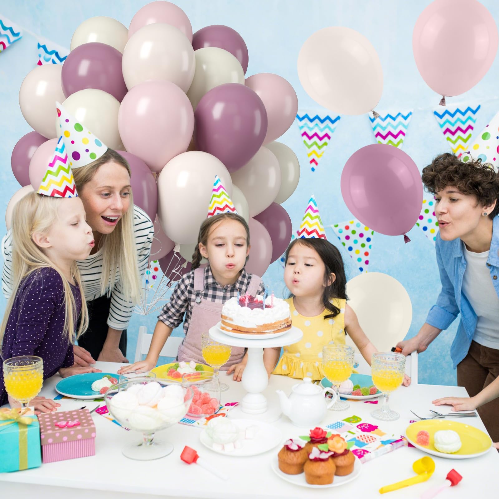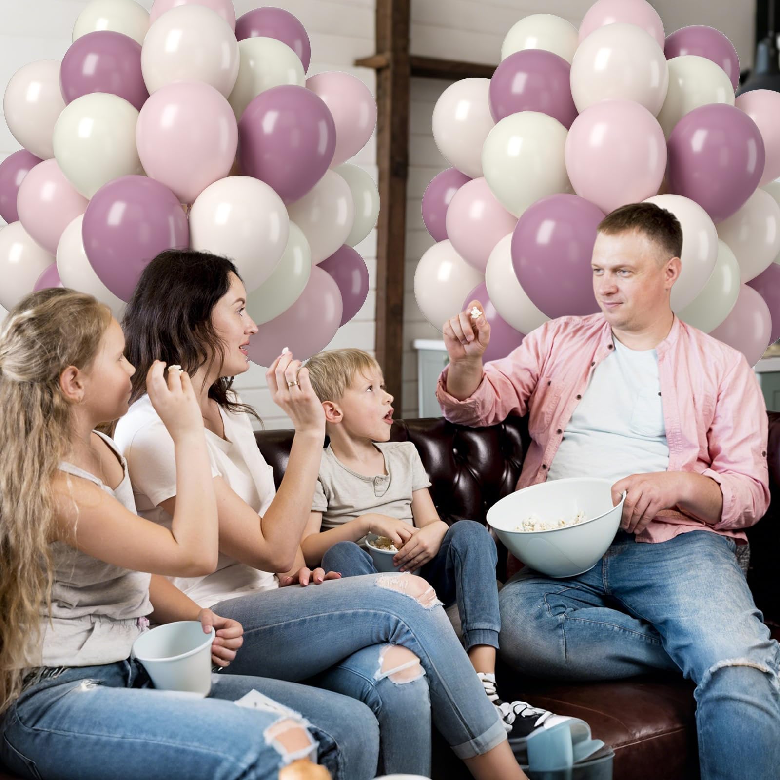 Various Occasions: Our dusty purple pink sand white balloons suitable for birthdays party, gender reveal, baby shower, weddings, anniversary parties, graduation, children's school party, shopping mall, bar and other activities decoration. Makes your party more attractive and fun.