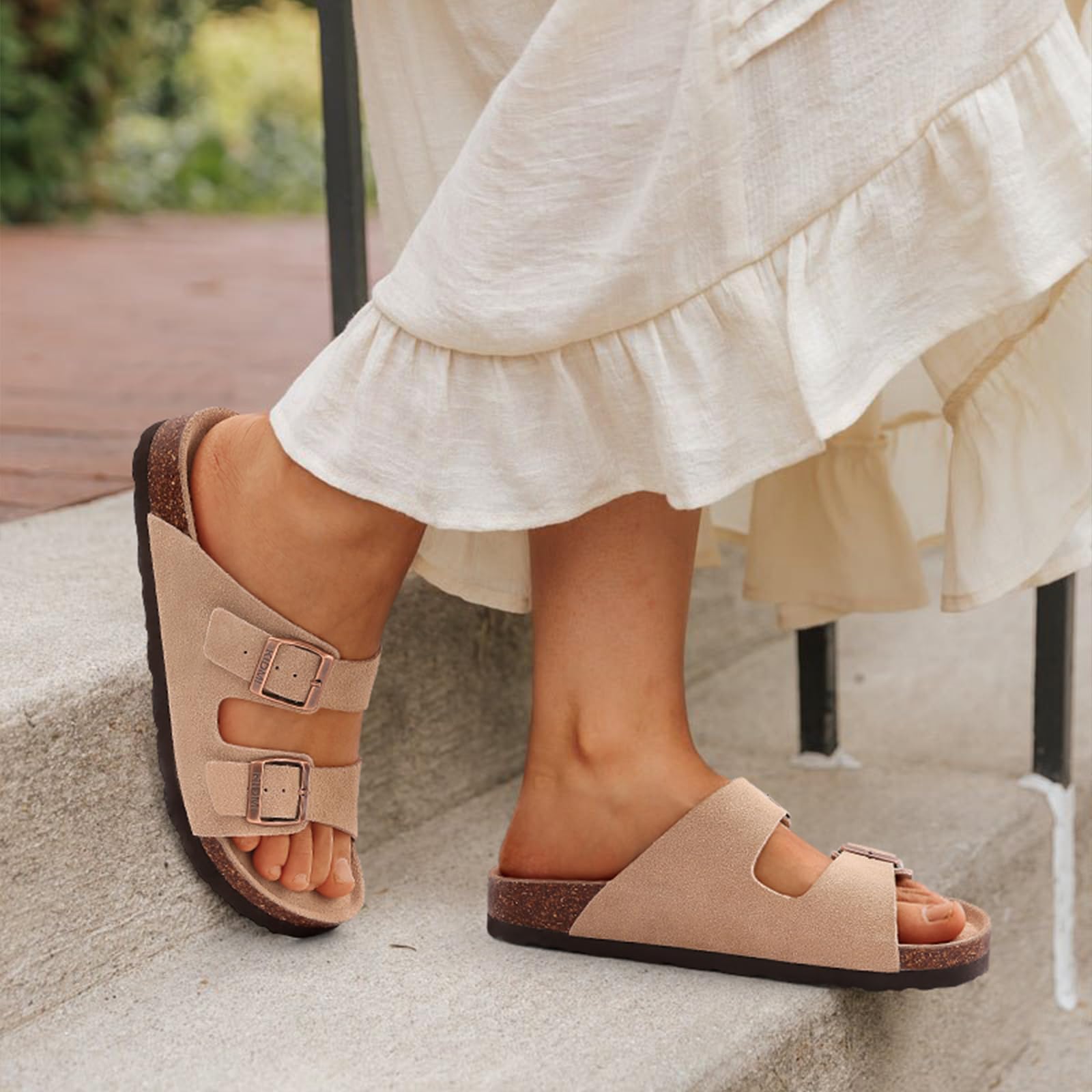 𝐒𝐨𝐟𝐭 𝐂𝐨𝐫𝐤 𝐅𝐨𝐨𝐭𝐛𝐞𝐝: These slip on sandals with natural cork footbed offer cushioning and support, the eco-friendly, lightweight material ensures effortless flexibility for every step.