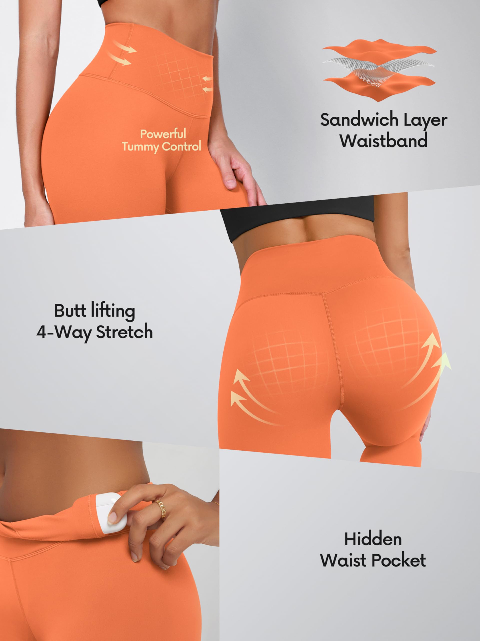 Seamless sandwich-layer waistband provides tummy control and a smooth, stay-put fit, keeping you secure and comfortable all day.