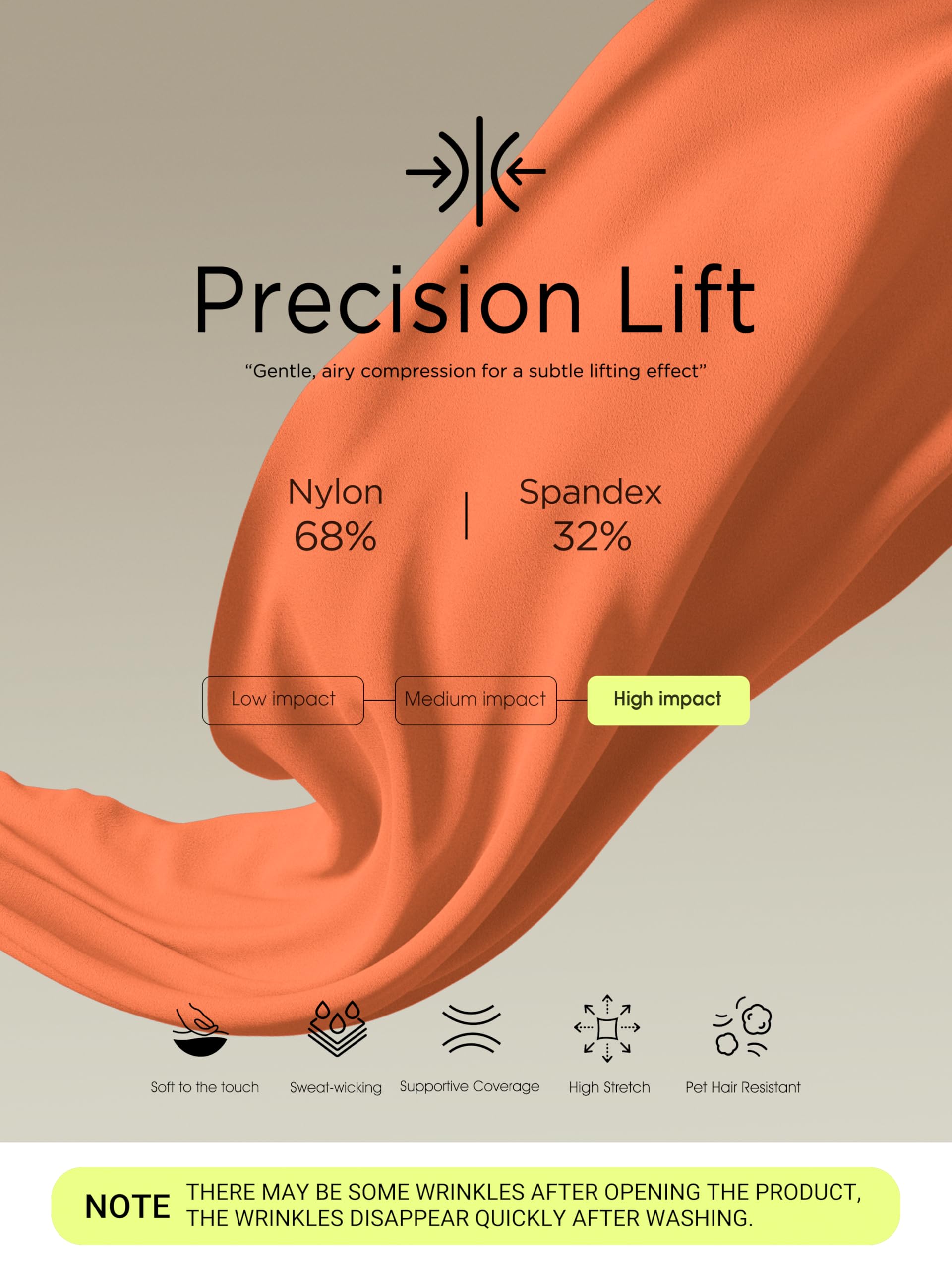 High-compression yet breathable fabric with a smooth, soft-touch finish for all-day comfort and support.