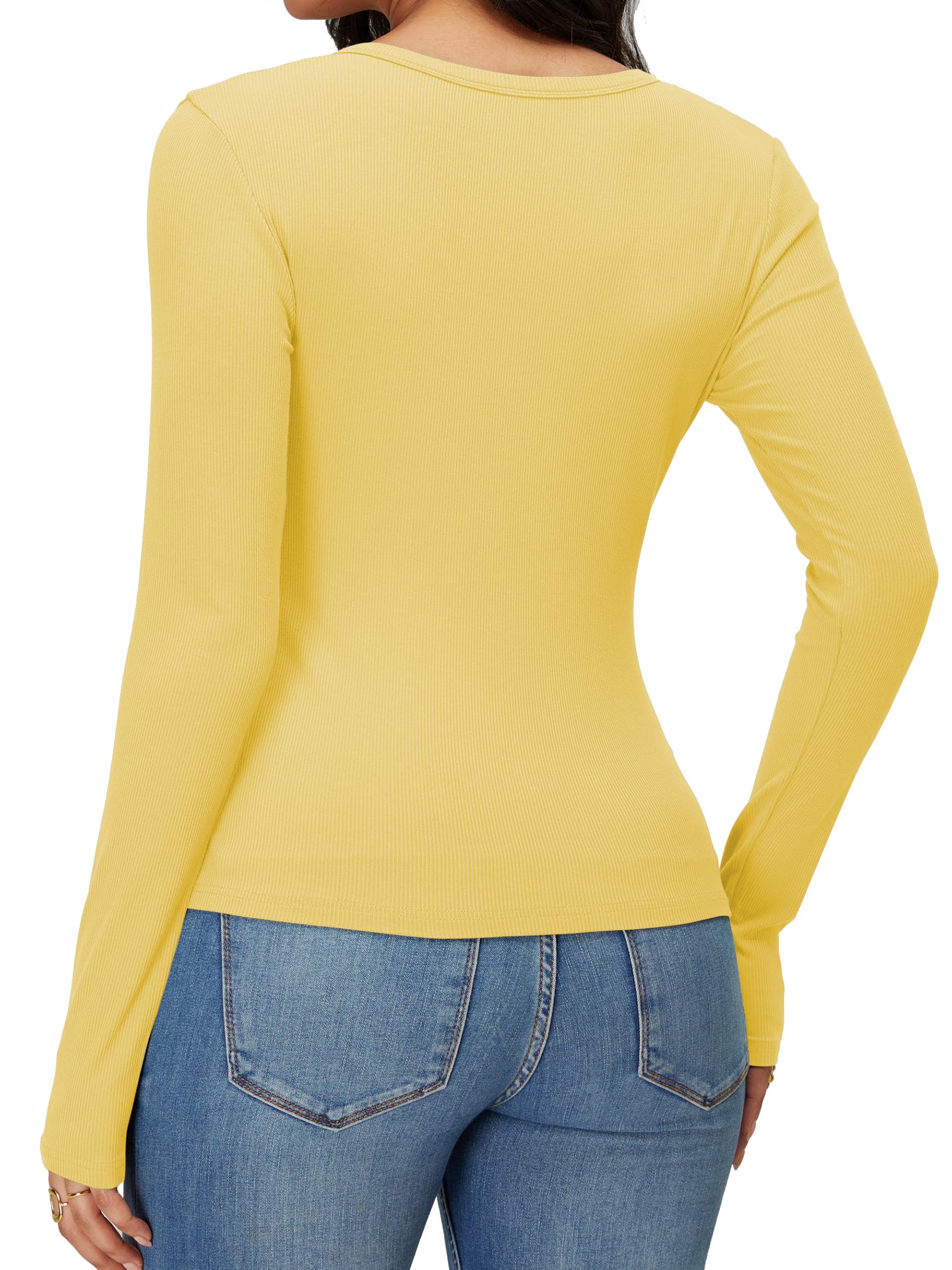 Material: 95% Viscose,5% Spandex. This long sleeve shirts are made of knit ribbed fabric. It’s so effortlessly sexy and soft,stretchy, lightweight and comfortable.Our softest intimates and best-ever base layers.