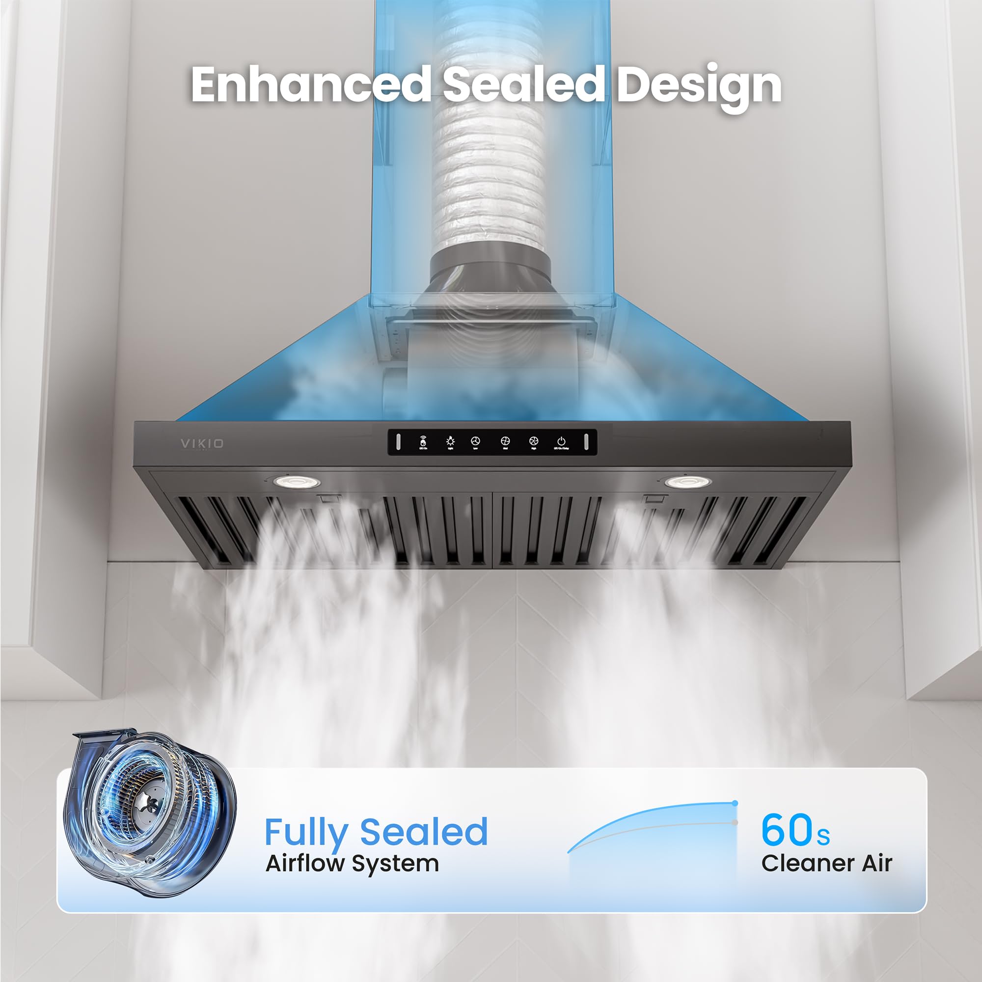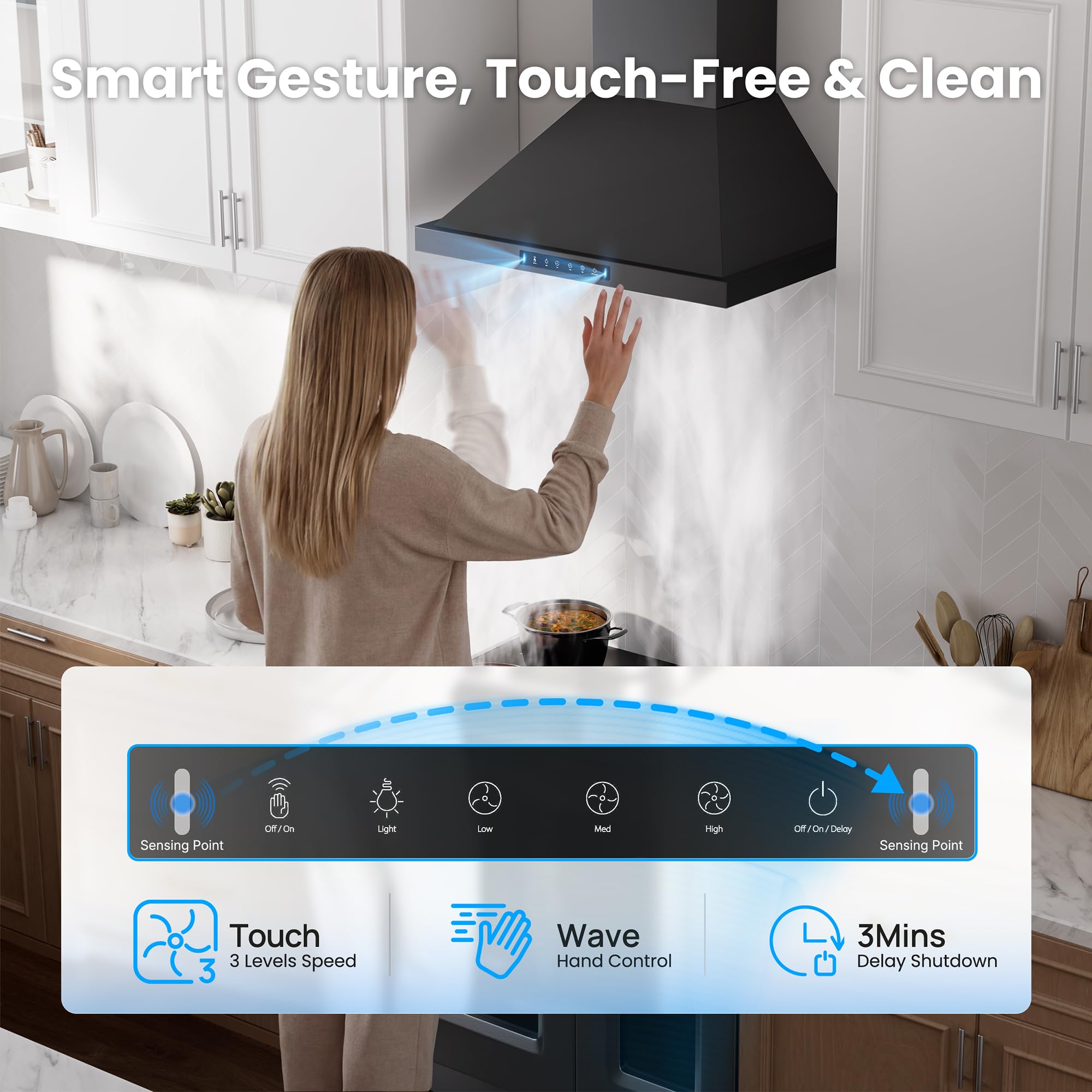 【Smart 3-Minute Delay & Memory Function】After cooking, enjoy a 3-minute auto-purge for fresher air. For personalized convenience, your preferred fan setting is saved, so your hood always picks up right where you left off, eliminating repetitive adjustments.