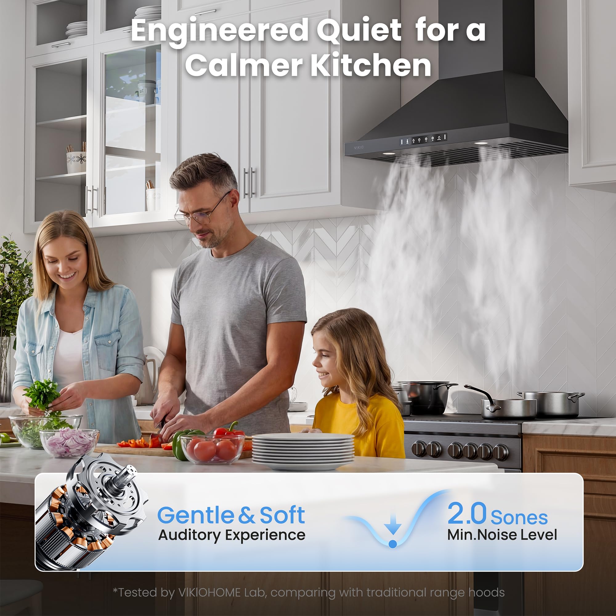 【Engineered Quiet for a Calmer Kitchen】We prioritize quiet performance as much as power. This kitchen hood upgraded system reduces noise by 2.5 dB, so even at medium speed, it maintains only a low background hum—quieter than a lively restaurant. Therefore, you can easily converse with guests or enjoy your favorite music while cooking.