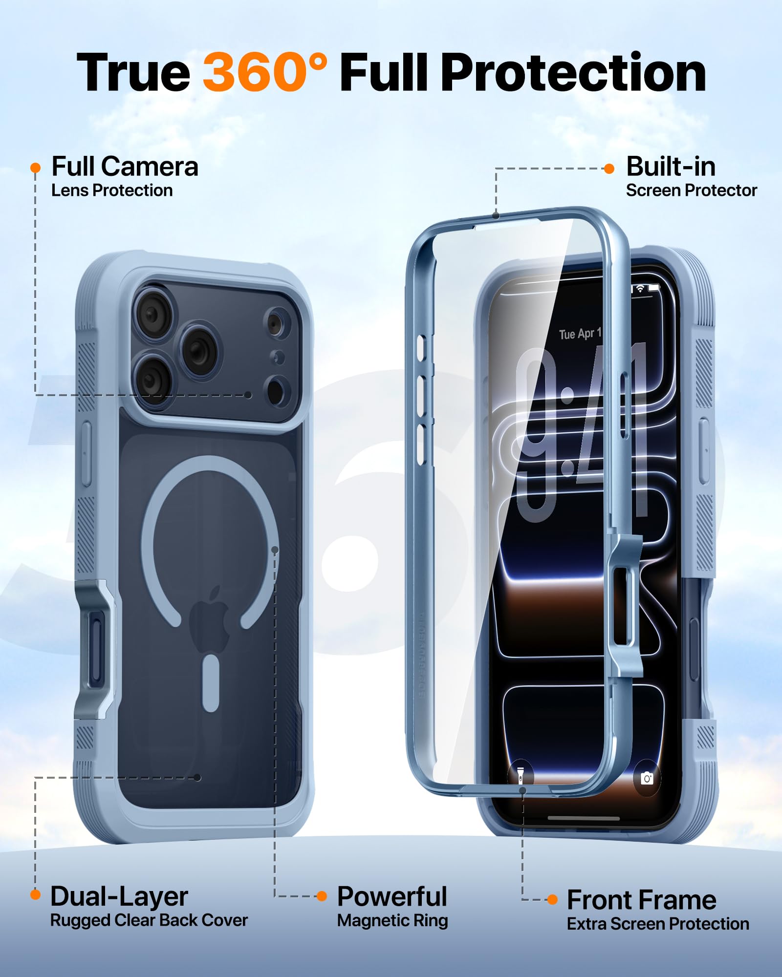 【Fit All Magnet Accessories】 Built in 2025 upgraded generation magnet ring, locking and compatible with magsafe accessories, wireless charging is faster, easier, and safer. Works 100% with wireless charging pad, don't need to remove the case.
