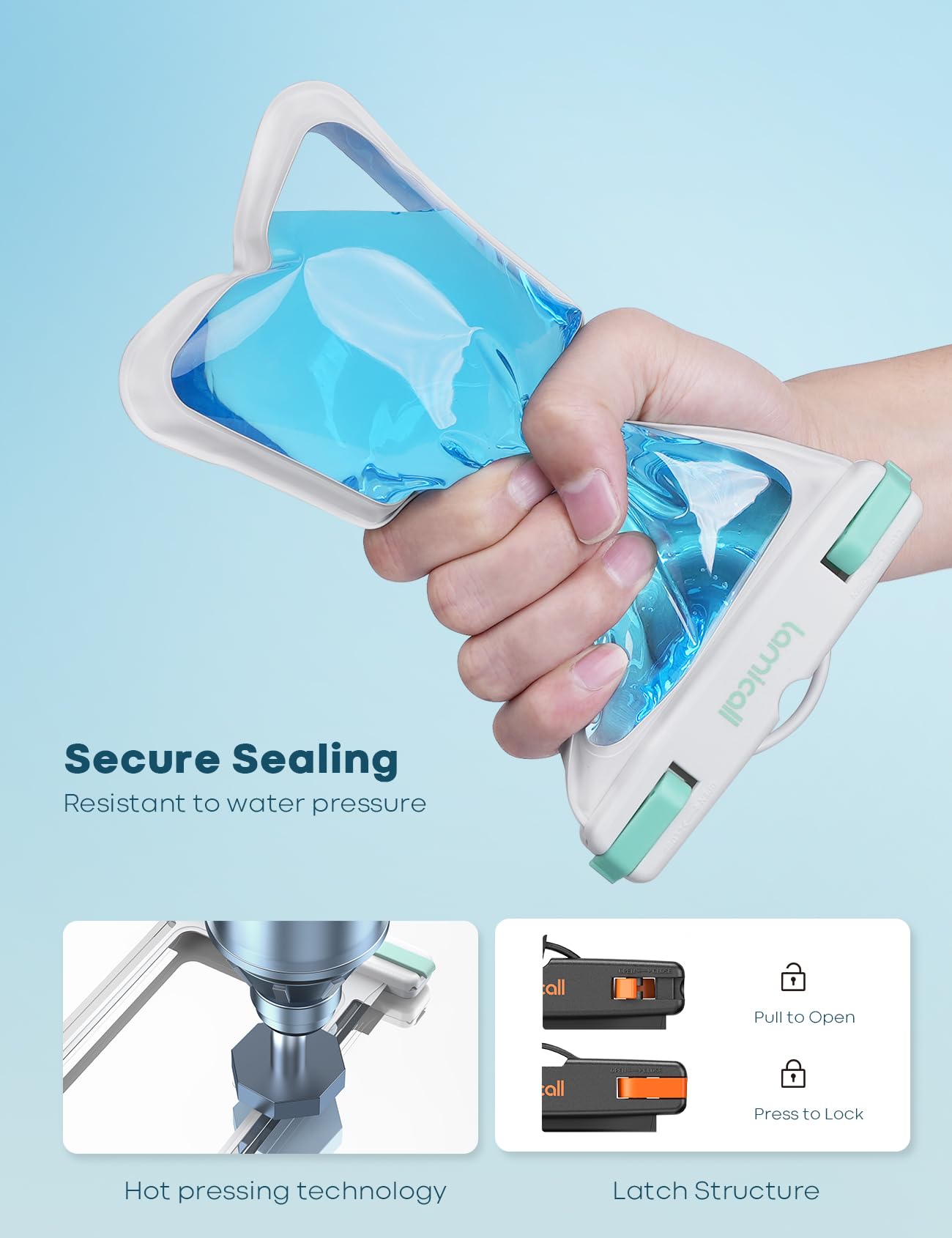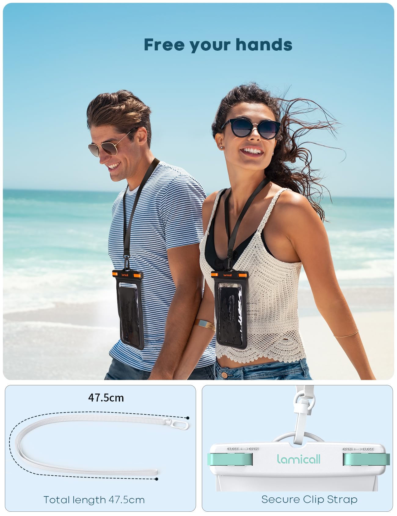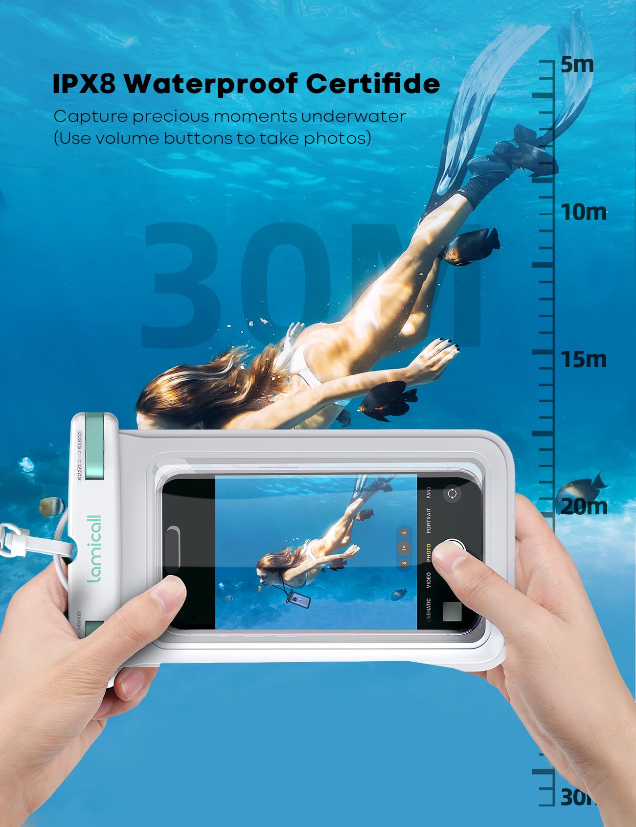 【IPX8 Rating Waterproof】Upgraded locking clips, high quality materials and latest seamless heat-press technology allow Lamicall waterproof phone case an excellent waterproof (IPX8 Rating). It is waterproof to a depth of 100 feet, which protects your smart phone from water, snow, sand, dust, etc. One of the best mother day gifts for mom.