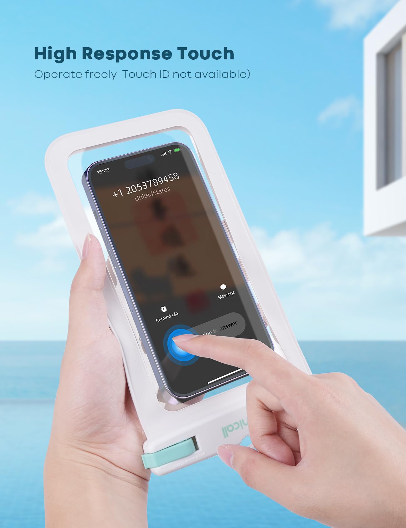 【Smooth Touch】The waterproof cell phone pouch made of outstanding soft PVC material, which ensures a smooth touch on the screen. Easy access to touch screen, camera, calls and other functions (except fingerprint recognition). ❗❗❗NOTICE: Due to the high water pressure, it is normal for the screen sensitivity to decrease in deep water. At this time, you can press the volume button to shoot.