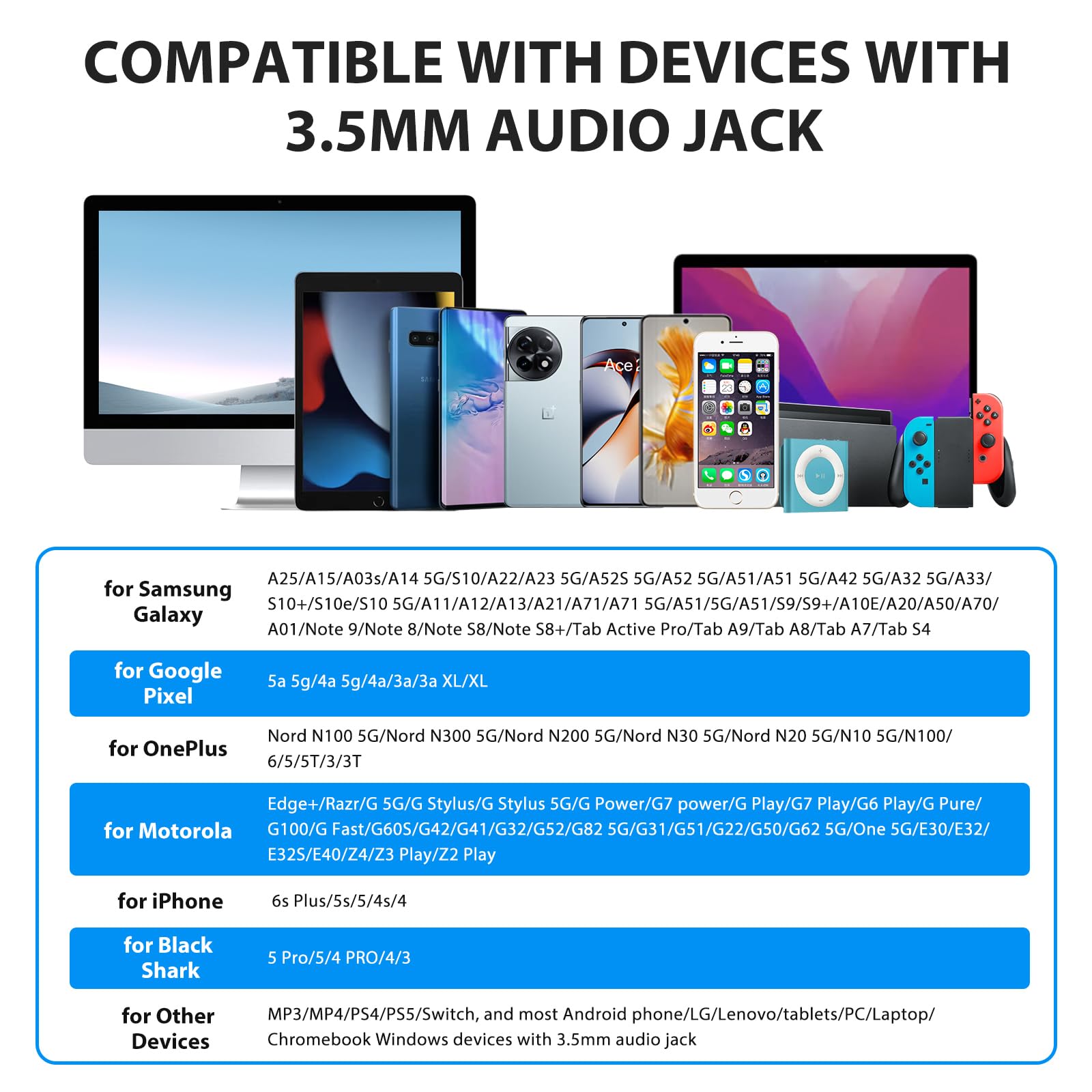3.5mm Aux Jack Wired Earbuds : 3.5mm audio jack earbuds for PC/Laptop/Kindle Fire,compatible with Samsung A25/A15/S10/S9/S8/Note 9/Note 8/A13/A14/A23/A21/A30s,A52/A42/A32/A71/A51/A21,A11/A50/A20,for iPhone SE/6s/6 plus/6s Plus/6/5s/5c/5,for iPad Mini/Air,for iPod touch 5, most Android phone/tablets/Chromebook/Windows devices,for Switch/MP3/MP4 and other devices with 3.5mm audio jack