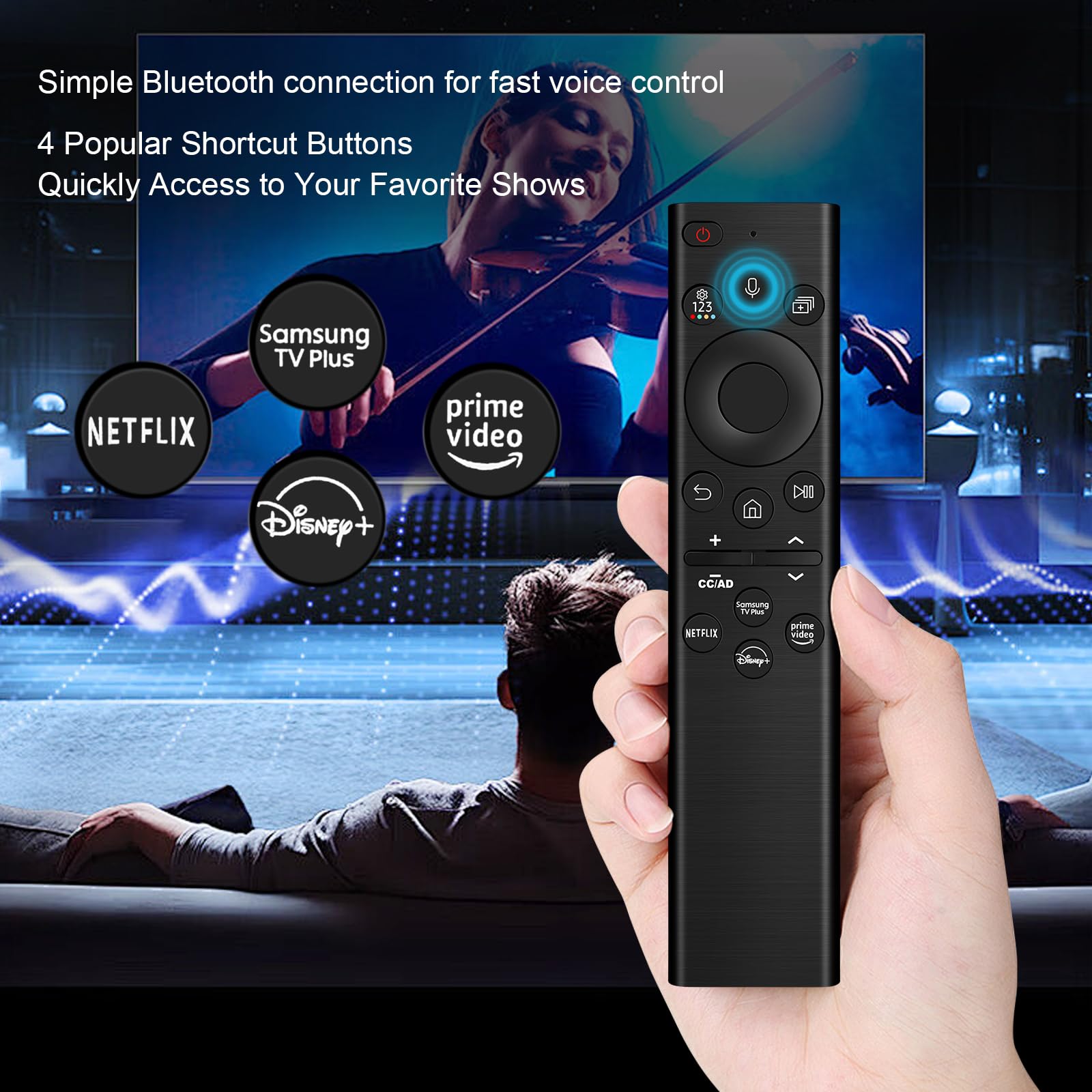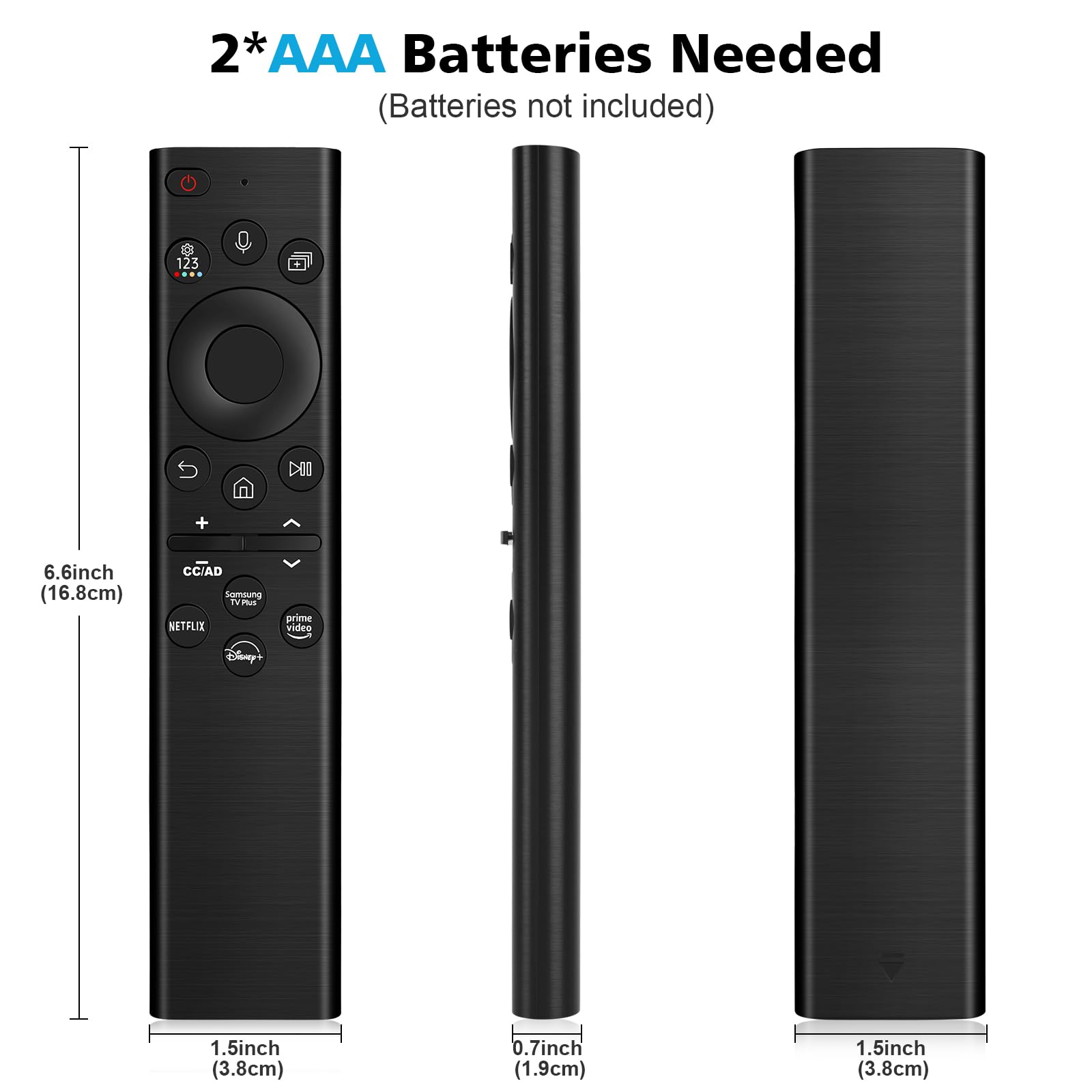 Smart Voice Remote Control: This control for samsung smart tv remote replacement (2019 to 2024) support precise Bluetooth voice control. Effortlessly search content from any angle, enhancing your home entertainment experience. Please note that if your Samsung TV does not support voice control, the voice function may not work. And it requires 2 * AAA batteries (batteries not included, not solar charging)