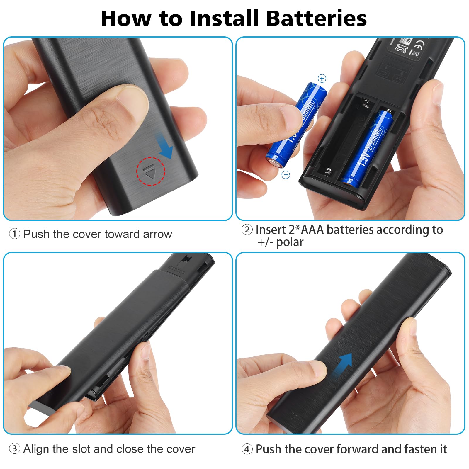 Free of Setup Requirements: This tv remote for samsung does not require complicated installation, and you can use it directly after installing batteries. The cover on the back of the remote control has a triangular arrow. Push the cover in the direction of that arrow, then open the cover and install the battery to use it