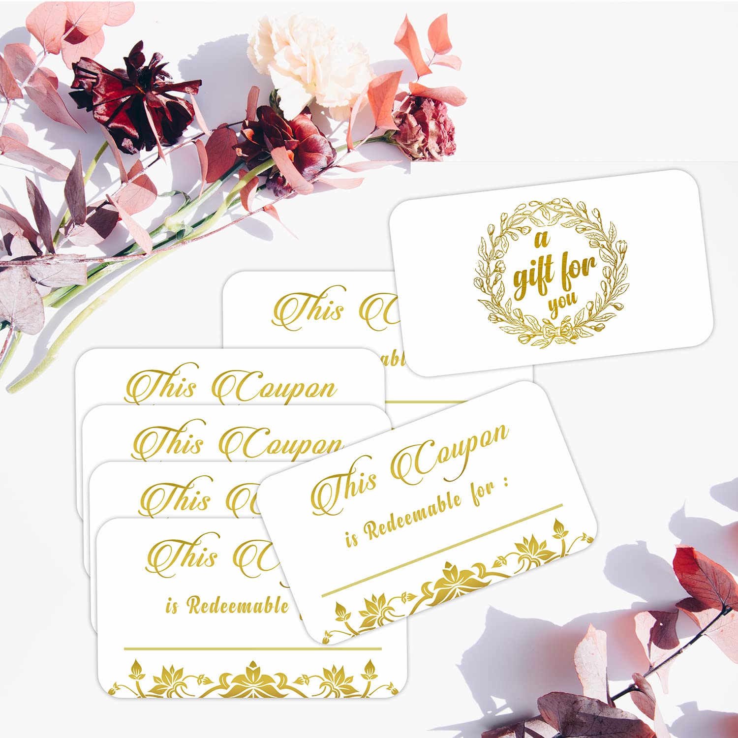 50 BLANK COUPON CARDS β Includes 50 premium blank coupon cards to create your own redeemable vouchers, love coupons, or gift certificates for both personal and business use.