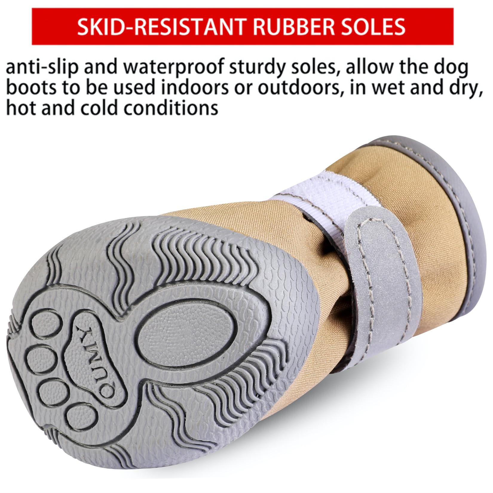 Comfortable and Skid-resistant: High-quality rubber soles give the dog's paws pampering care, soft and comfortable. The slip-proof sole provides stability and traction, protection from rough terrain and hot pavement. Help older dogs to stand up on hardwood floors easier