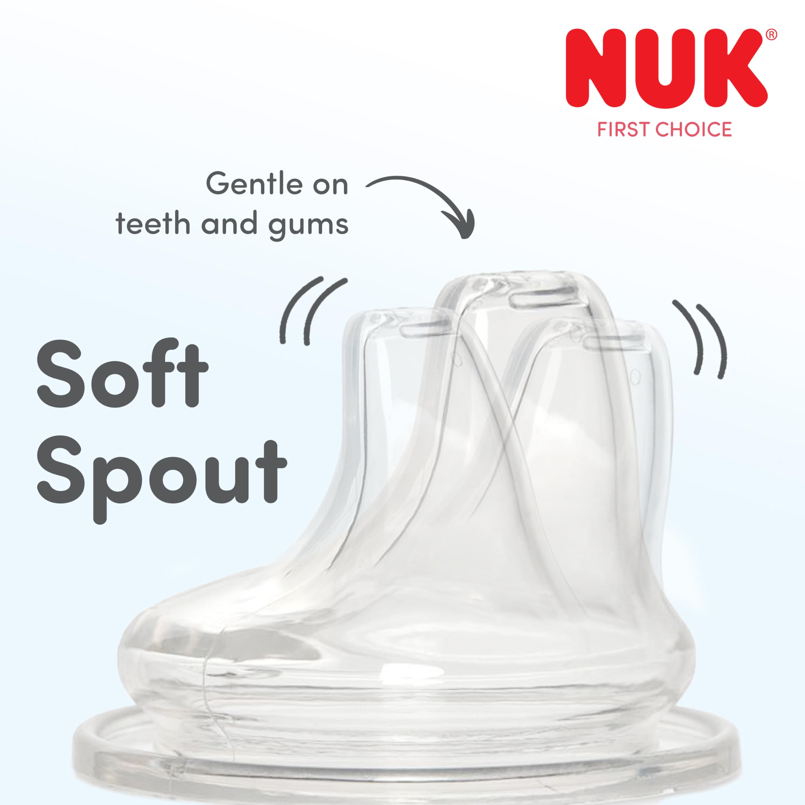 Spill-proof soft spout is designed to be gentle on gums; liquids flow easily when sipped