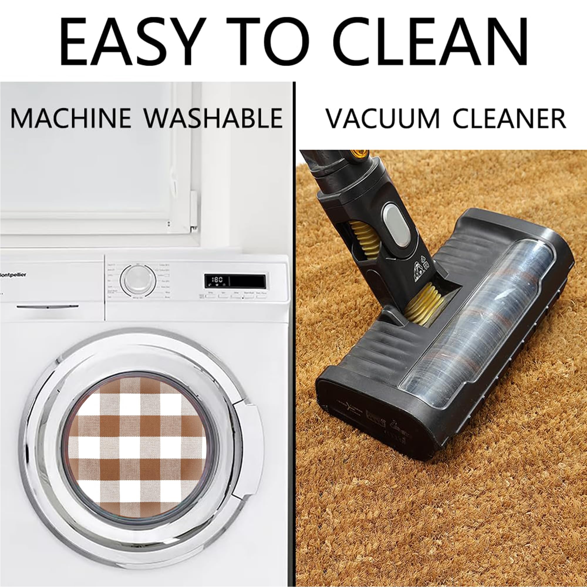 Add a touch of rustic charm to any space with our handwoven, high-quality buffalo plaid rug; Made from cotton, that is soft and comfortable to the touch, it features an coffee and white checkered pattern and measures 43" x 28"
