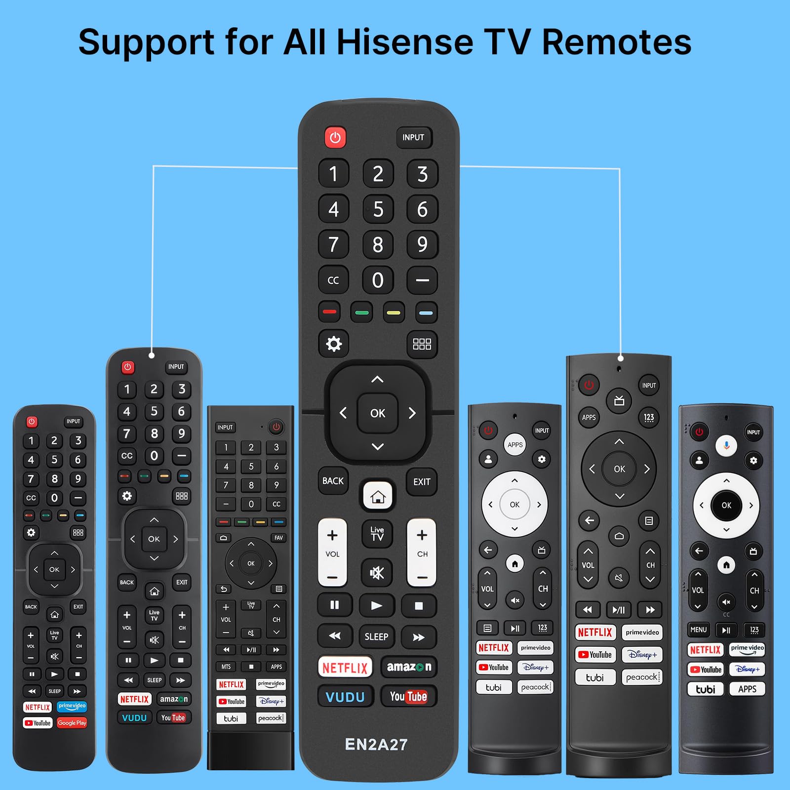 【Compatible for Hisense TV Series】 EN2A27 for Hisense universal TV remote, compatible with all Hisense TVs, H6B, H7B, H5C, H6C, H7C, H8C, H5590F, H6570F, H8F, H9F, H8G, H9G, H5500F, H5500G, H6510G, H6570G, H8G1 Series ect.