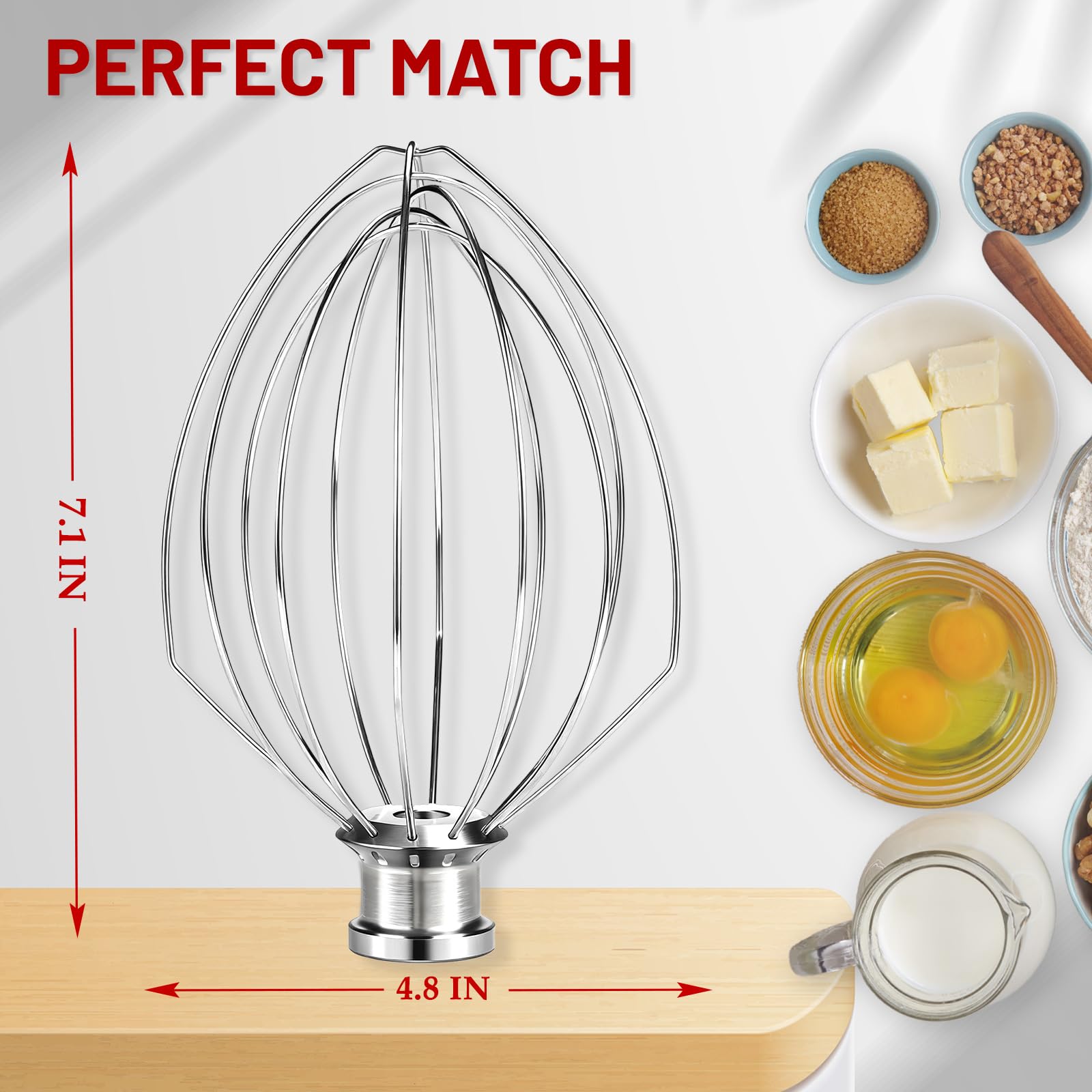 RUST & CORROSION RESISTANT:The K5A Made from high-grade 18/8 (304) stainless steel, this stand mixer whisk attachment is built to resist rust, corrosion, and oxidation, even with exposure to humidity and harsh detergents.