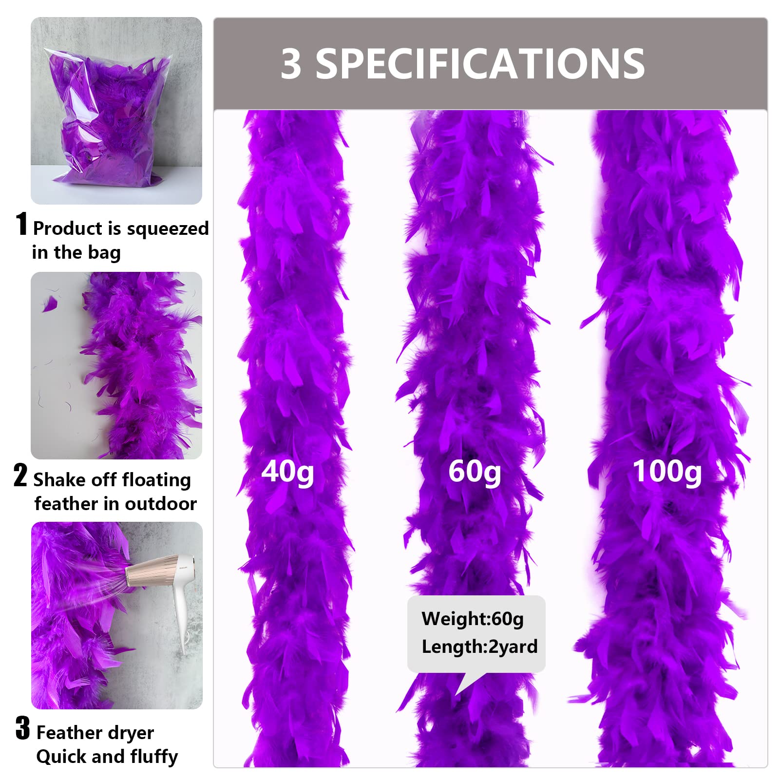 ❤️ Applications:These feather boas are perfect for dance performances,weddings,special events, Mardi Gras celebrations,Christmas parties, New Year’s Eve parties, Halloween parties, etc; also can be used on arts crafts project and holiday decoration.