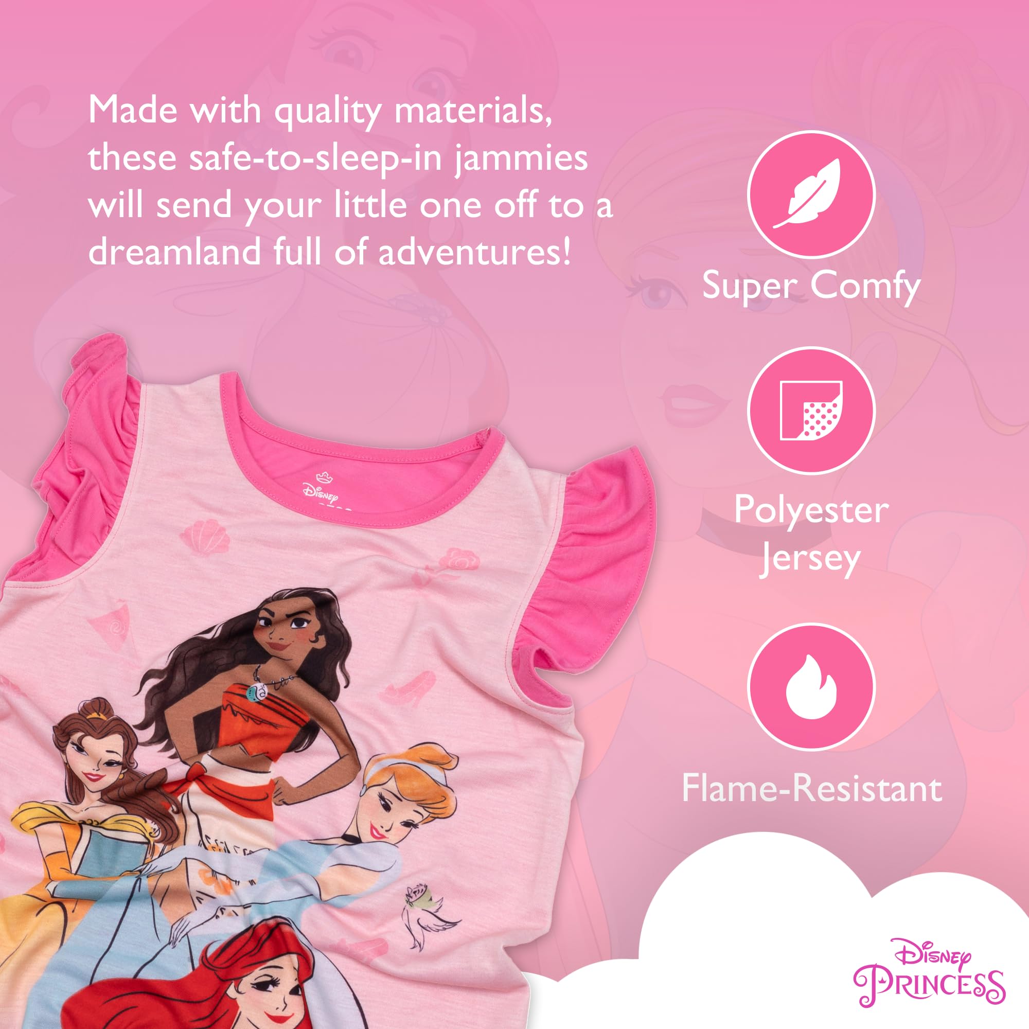 BE A DISNEY PRINCESS: Get your little girl ready for some fun with Cinderella, Belle, Ariel, Moana, and more in these princess-dress nightgowns. Sheβll feel like royalty while she dreams of adventures. Officially licensed Disney product.