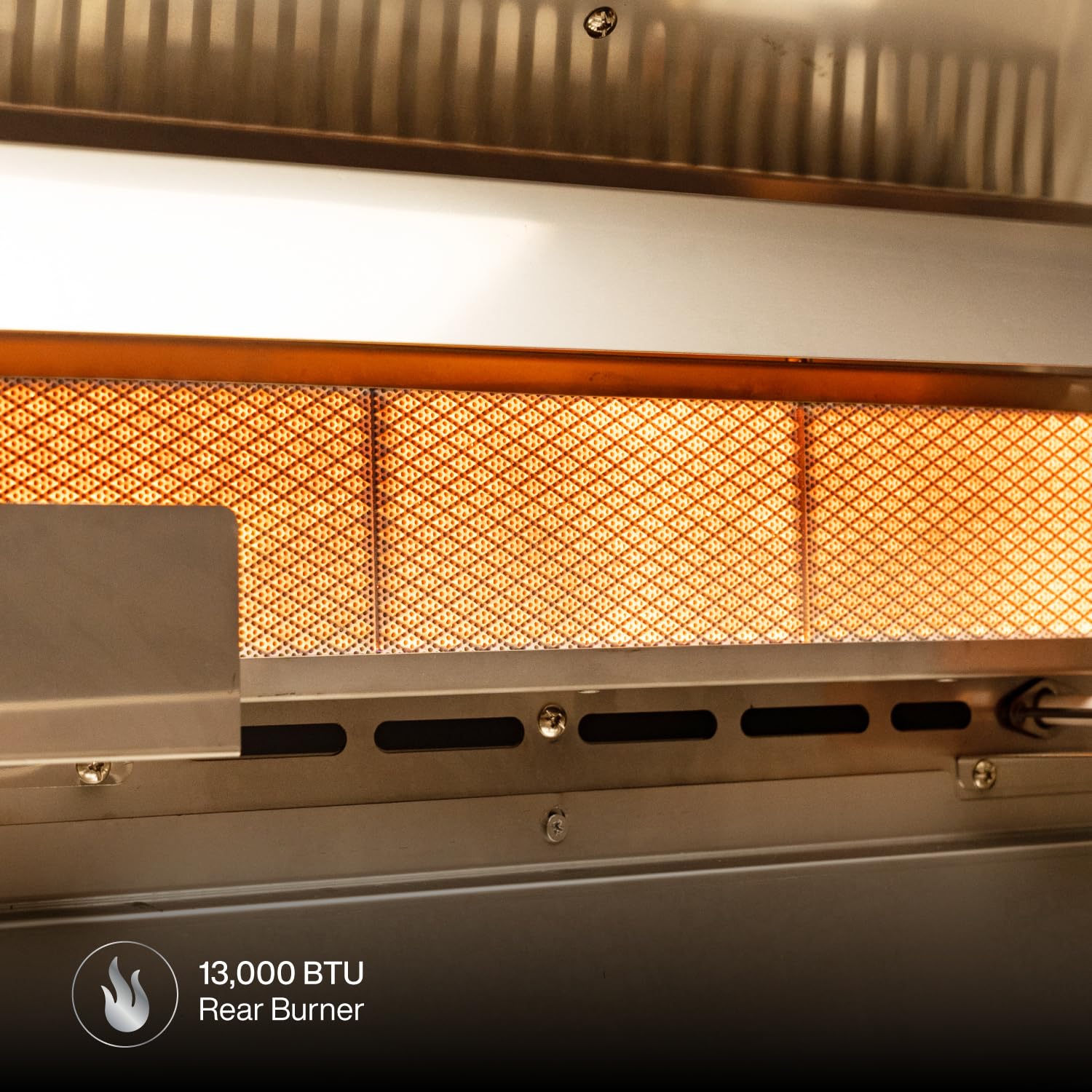Versatile Rear Burner: The 13,000 BTU rear burner in this grill provides added cooking flexibility, perfect for rotisserie cooking or warming dishes. It ensures even heat distribution while allowing you to cook multiple items simultaneously.