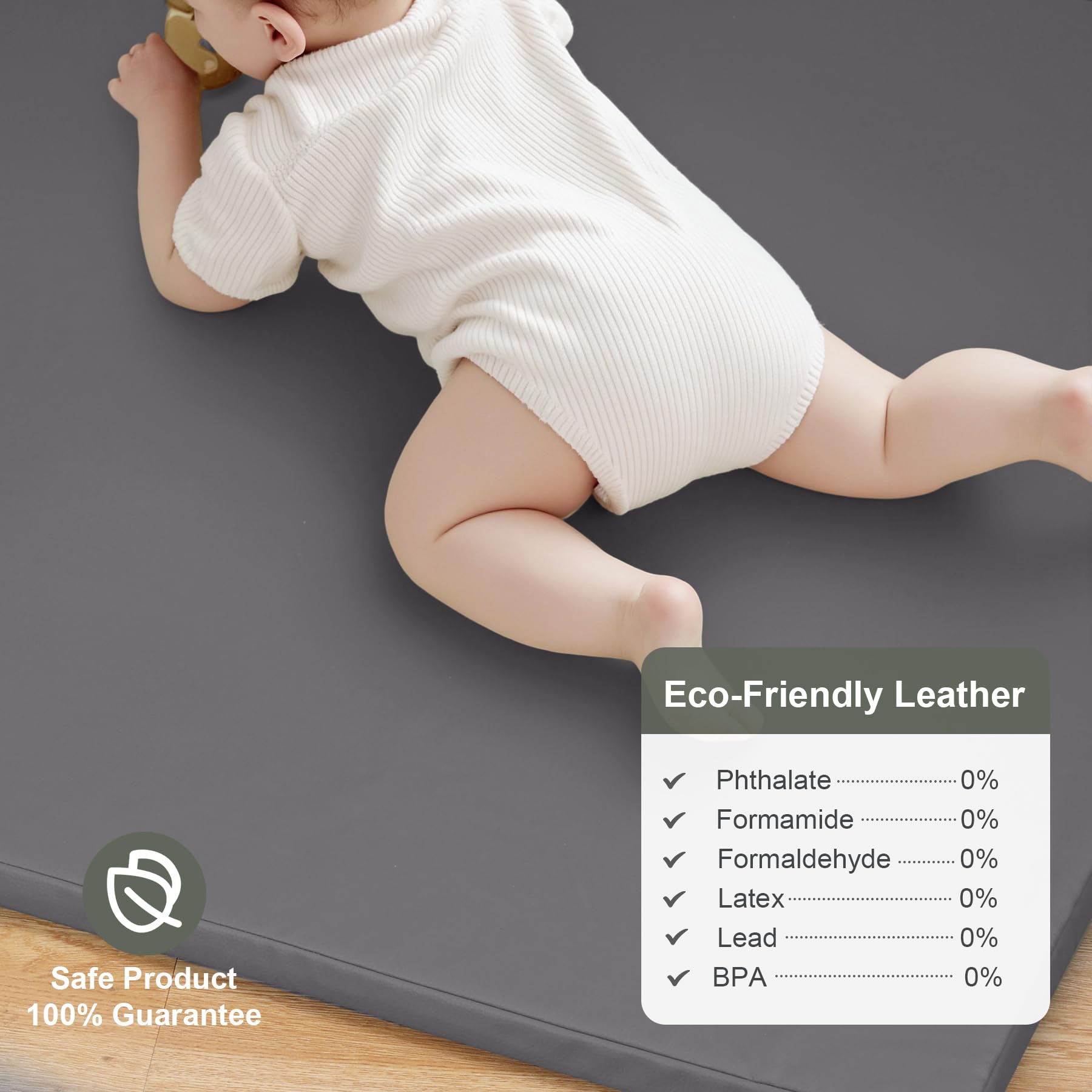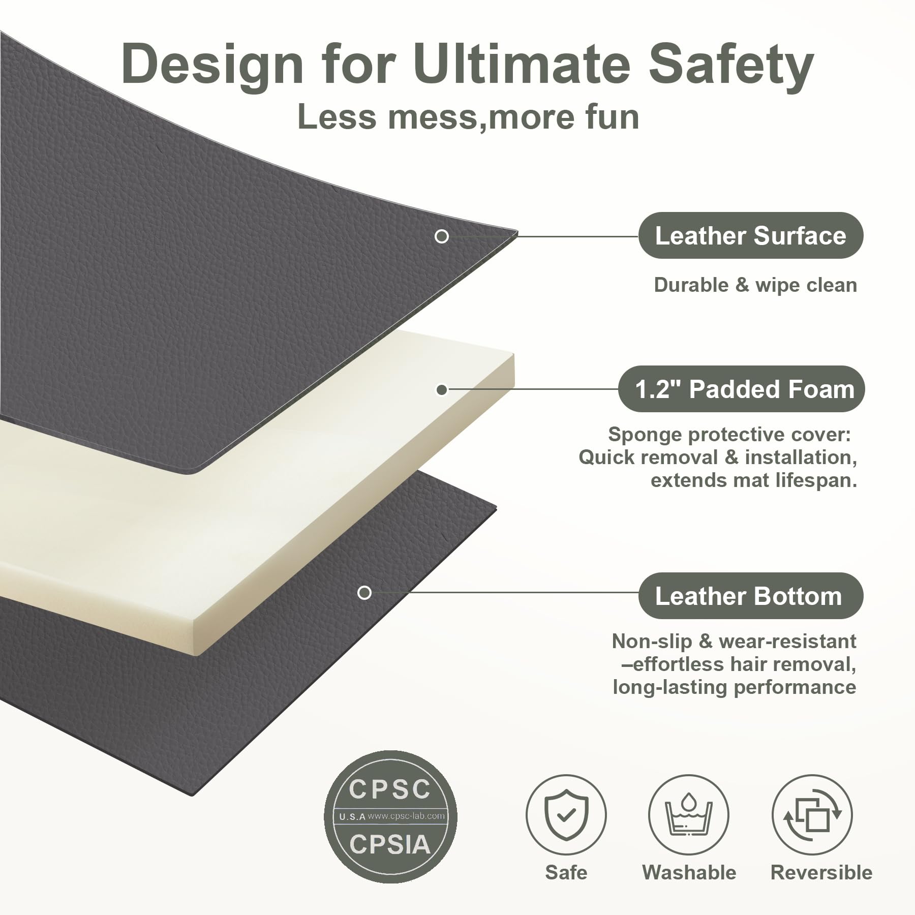 Wipe Clean Play Mat: Both sides are vegan leather for easy cleaning. The leather surface is completely waterproof and stain-resistant, making it perfect for spills, messes, and daily play. A simple wipe keeps it looking as good as new! Great baby mat for floor.