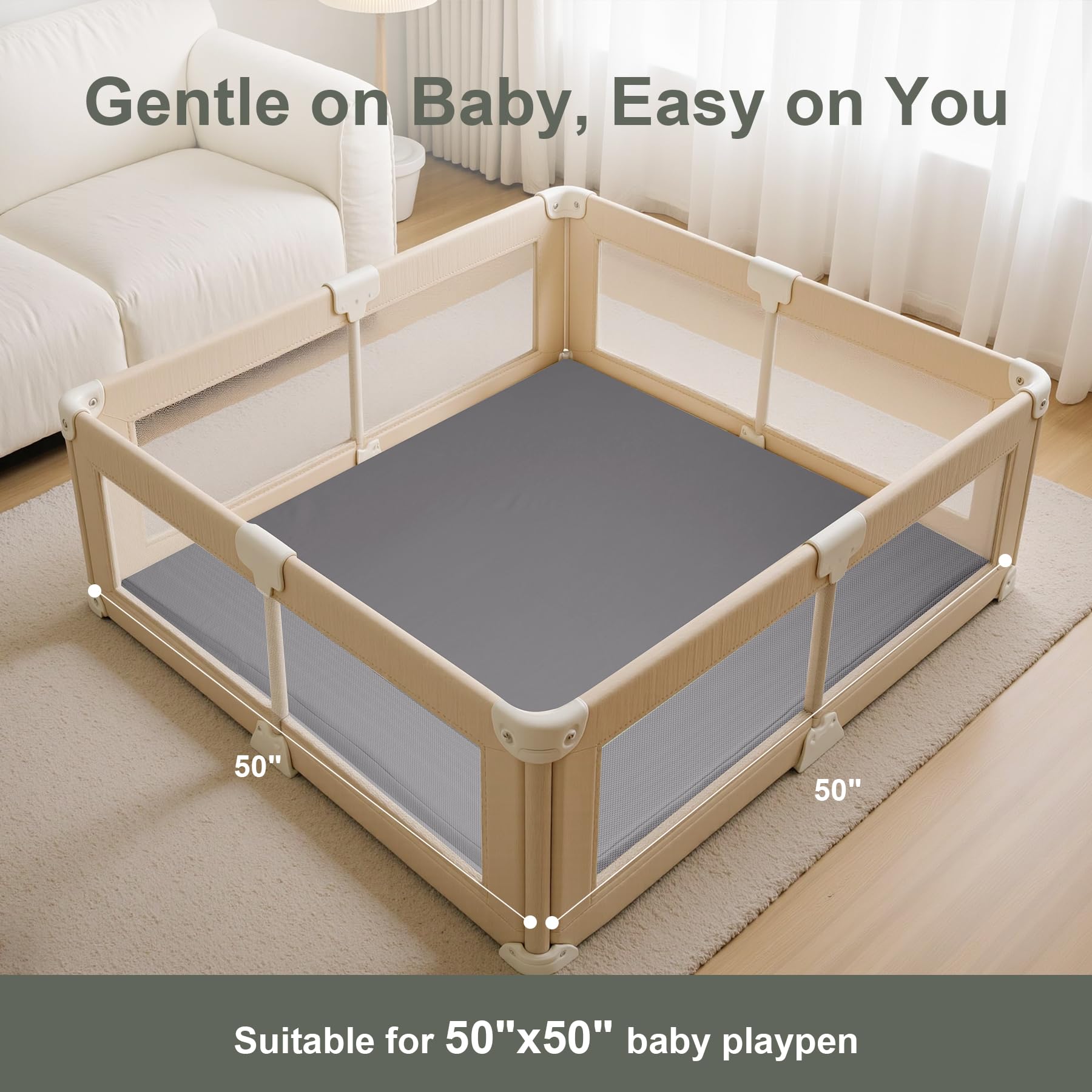 Non-Slip & Safe Play Area: The playmat can be functional and cozy for baby's activity! The crawling mat measures 50x50x1.3 inches, making it perfect for a 50x50 baby playpen.With its medium-firm cushioning, the mat ensures optimal support for your baby's crawling, sitting, or learning to stand, while offering a soft and safe surface for play.