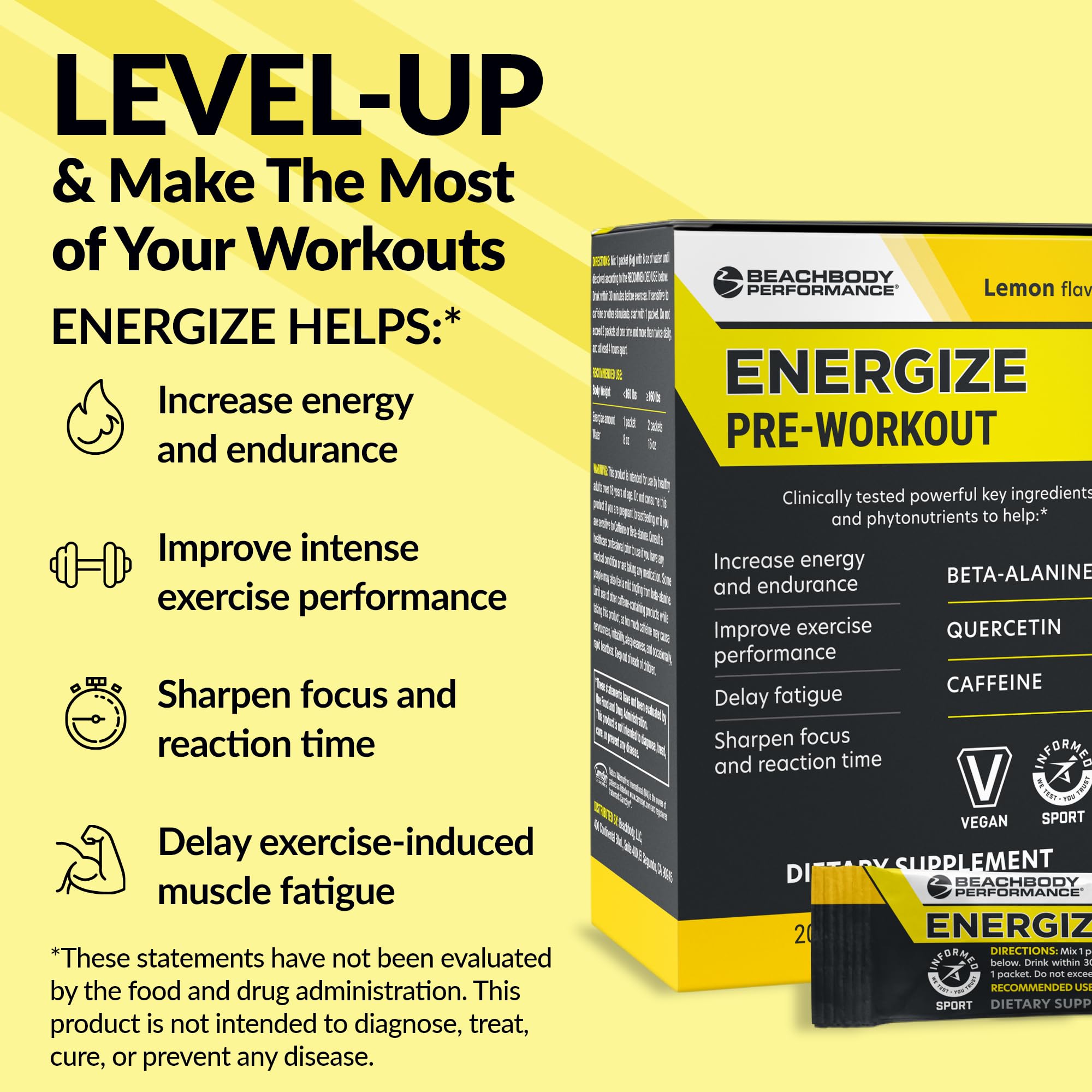 DELAY FATIGUE & SHARPEN FOCUS - Energize contains beta-alanine and quercetin, key ingredients that supercharge your workouts. Beta-alanine helps delay fatigue during intense sessions, while quercetin helps enhance endurance, giving you the competitive edge needed to excel.*