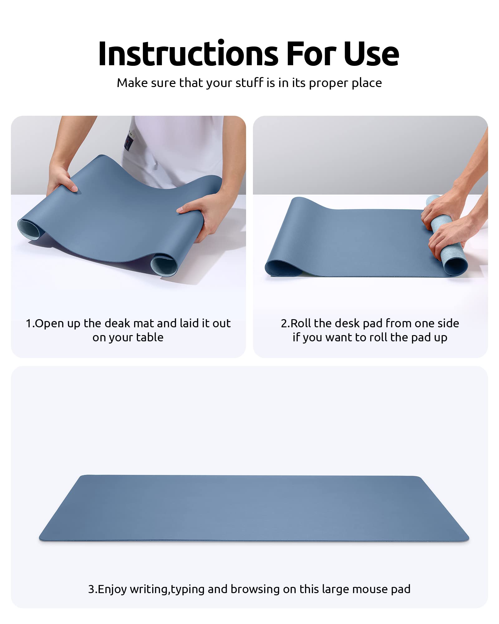 EASY TO CLEAN: Waterproof leather desk pad. Just use cloth for basic clean: liquid, dust, grease and dirt. Wet cloth would be prefer if there are too much dirt in the desk mat.