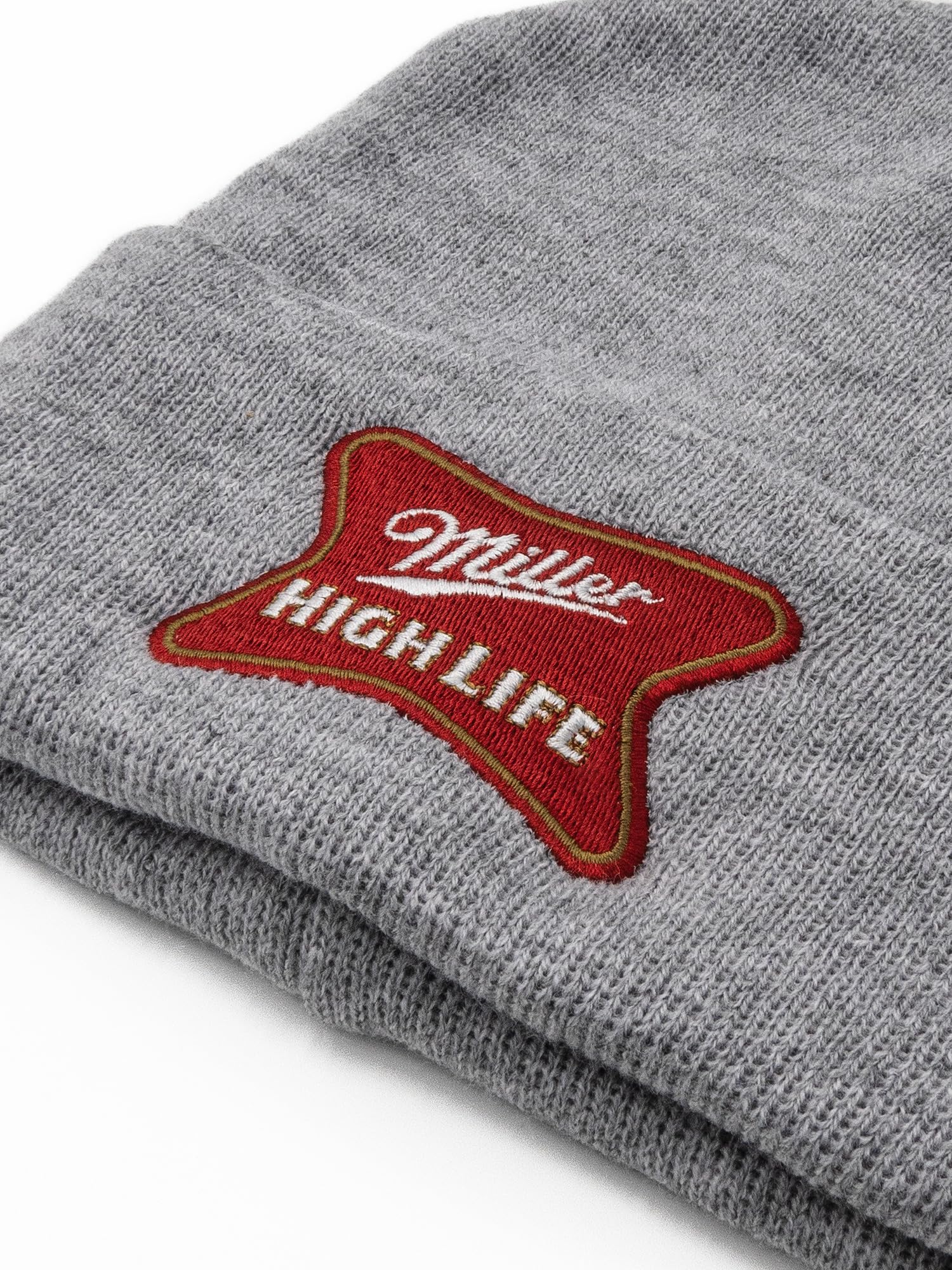 Your New Favorite Miller High Life Hat: Lounge in comfort with this Miller cap featuring the always recognizable High Life beer logo - tastefully embroidered on a soft, gray cuffed beanie.