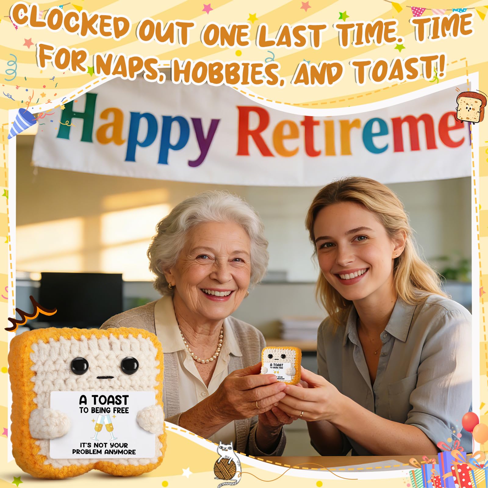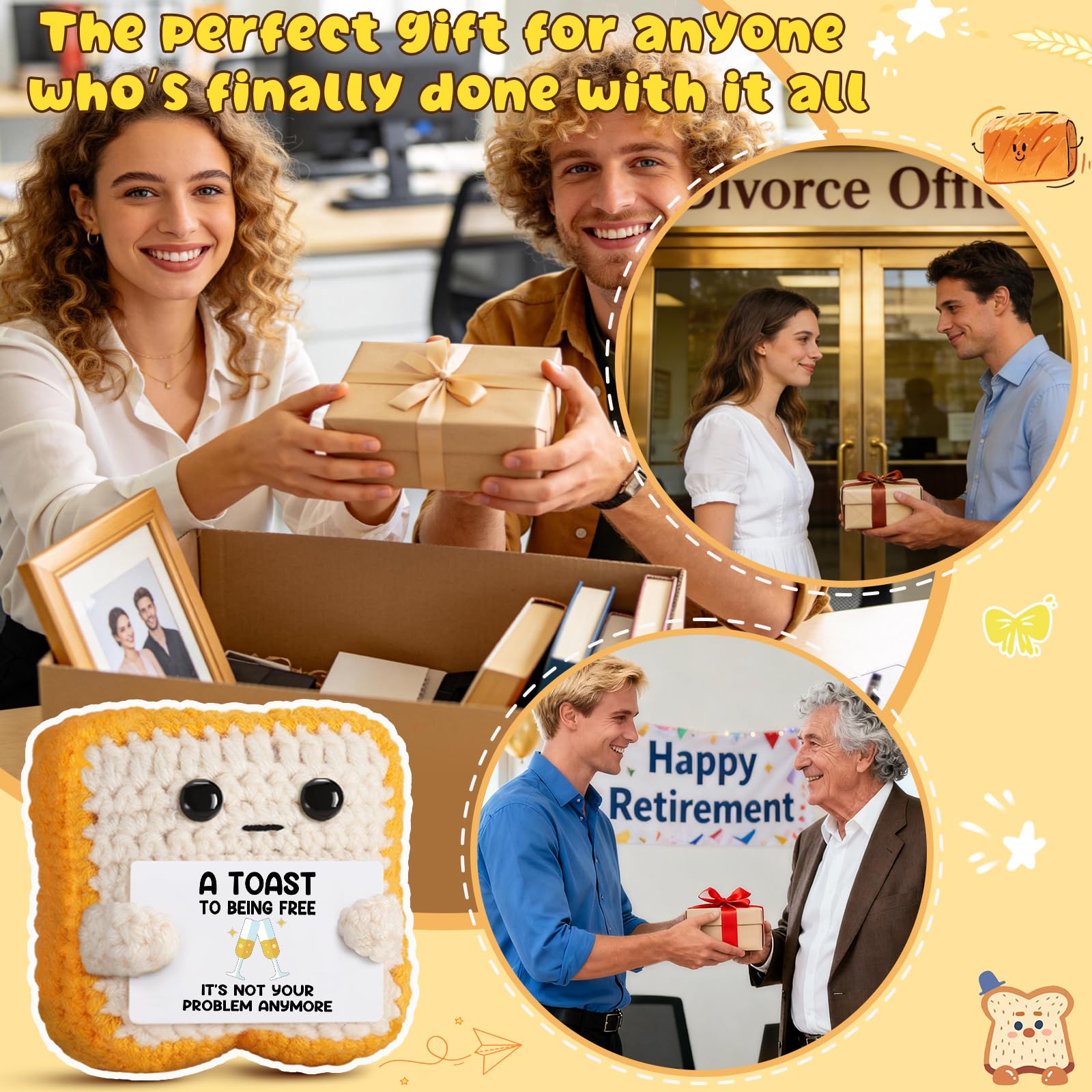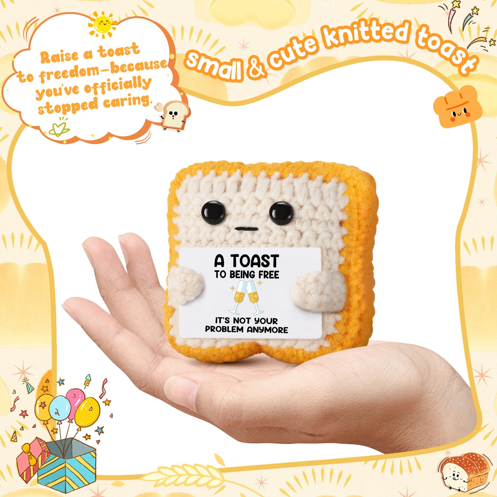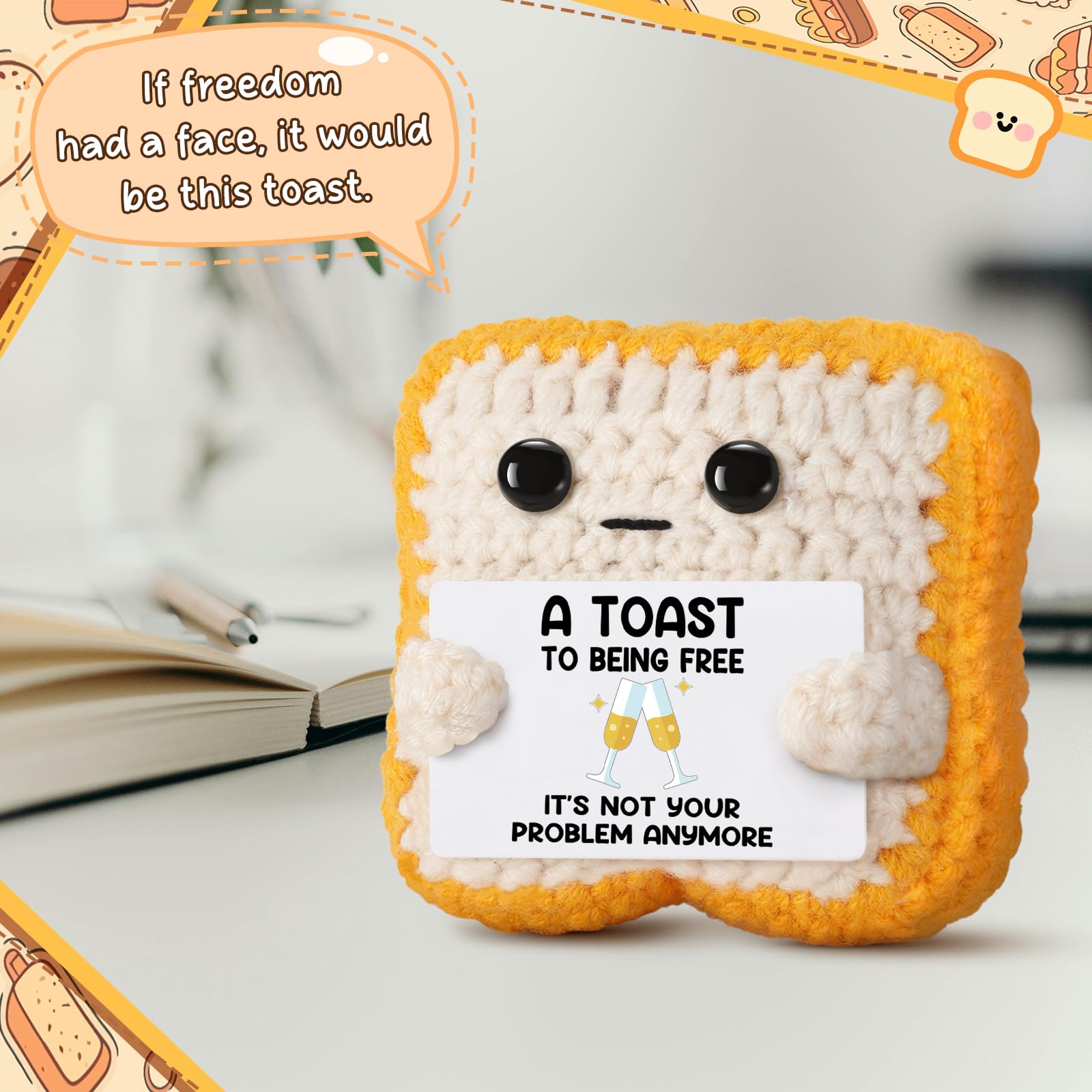 Celebrate New Freedom: Whether it's a divorce, breakup, job exit, retirement, or graduation — This handmade crochet toast is more than a gift—it’s a heartfelt companion for their new journey, it comes with the uplifting card "A Toast to Being Free! " , is always there to remind their worth.