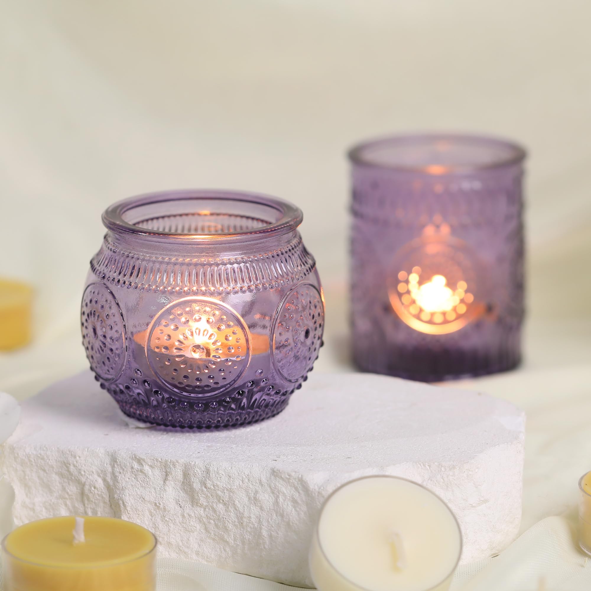 Purple Decor for Various Occasions: These glass candle holders are ideal for wedding table decorations, tea party decorations, bridal shower table decor, dinner table setting decor, also can be gifts for housewarming.