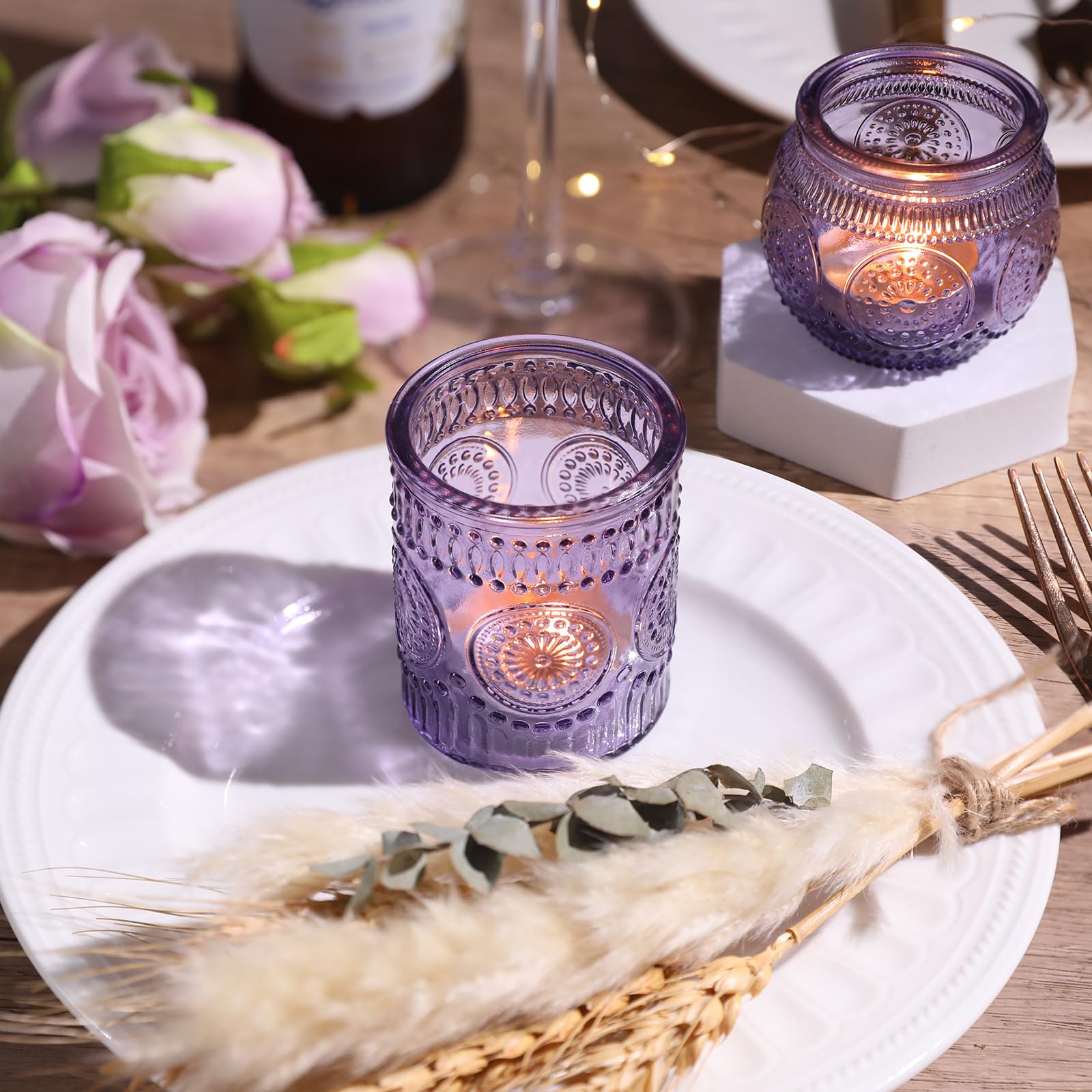 Retro Style: Each candle holders feature beauty, rich purple color and sunflower embossed design, be rich with the vintage and stereoscopic feeling. It will be a nice purple centerpieces for your wedding table, dinner table, or bridal shower decorations.
