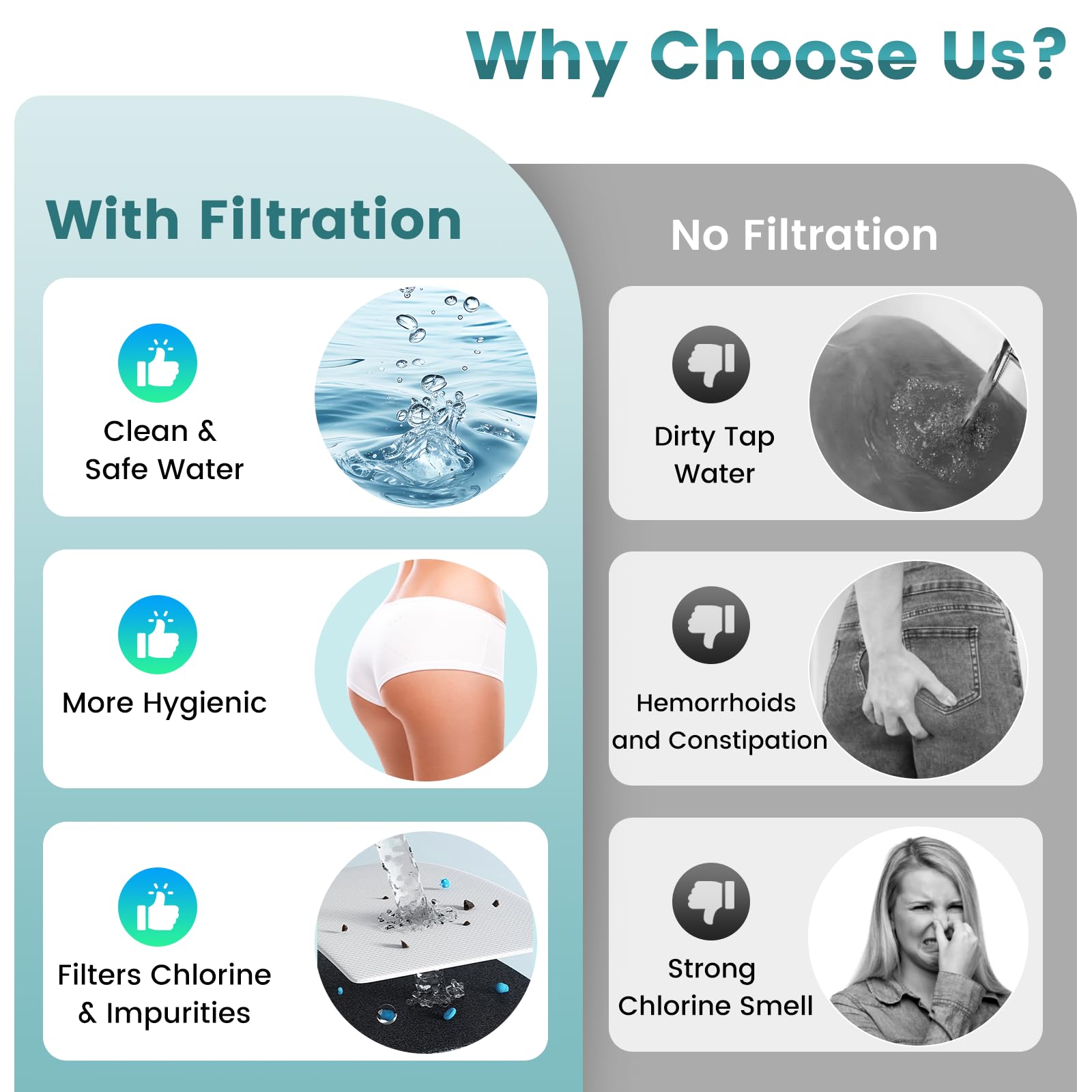 [Advanced Water Filtration & Hygiene Protection]The FEELSO bidet is features an advanced multi-stage filtration system, including high-purity KDF, calcium sulfite, and other premium media. This powerful filtration technology effectively remove up to 99.9% of chlorine, heavy metals (such as lead, mercury, nickel, and chromium), and other harmful substances. Compared to traditional bidets, our bidet toilet seat provides a healthier and more advanced hygiene experience.Please find the CORRECT REPLACEMENT FILTERS in our store: B0FT6XB7WZ