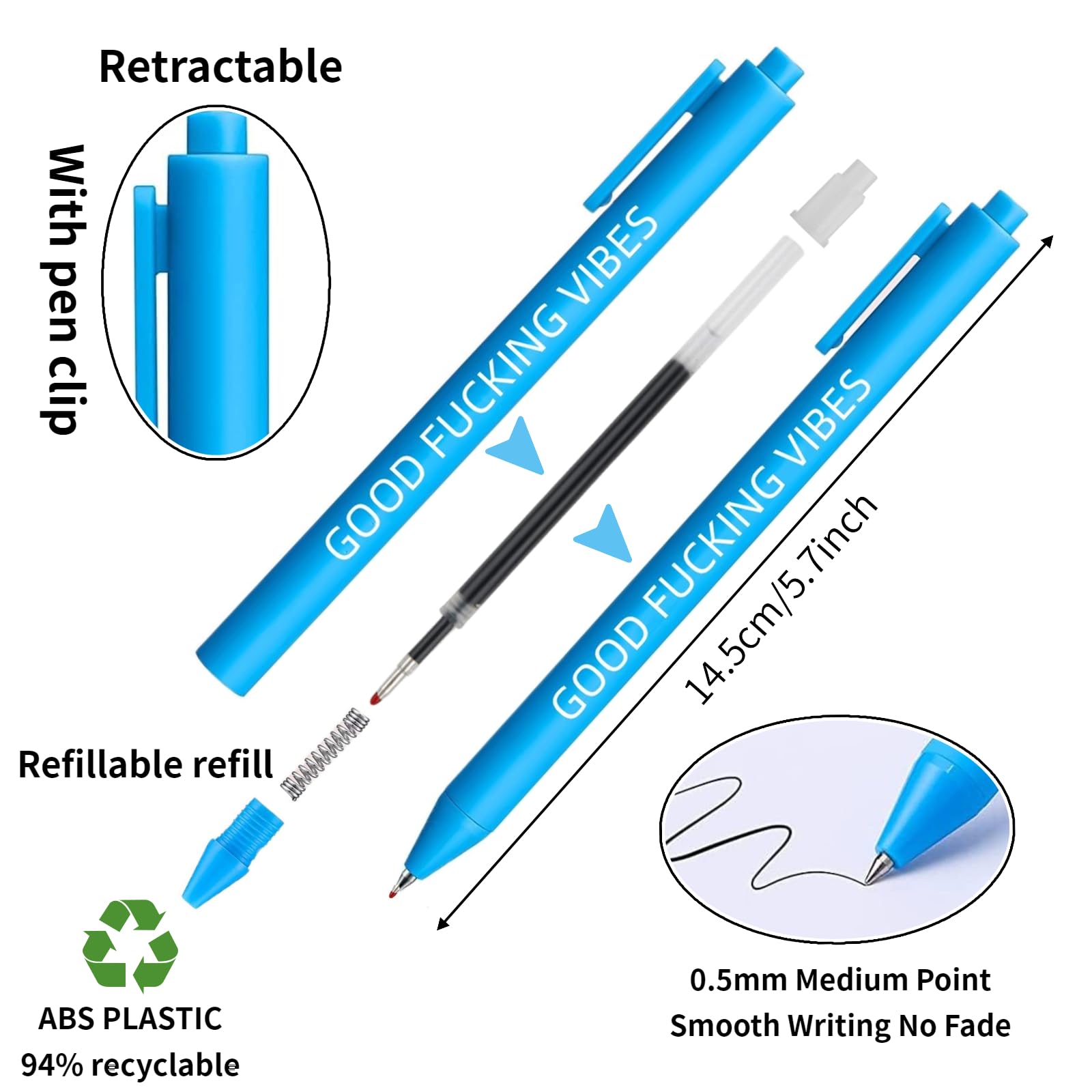 11 Unique & Hilarious Designs - Each plastic pen features bold, eye-catching phrases like "GO FUCK YOURSELF," "CALM YOUR TITS," and "GOOD FUCKING VIBES." Perfect for adding laughter to dull days or surprising colleagues with office humor.