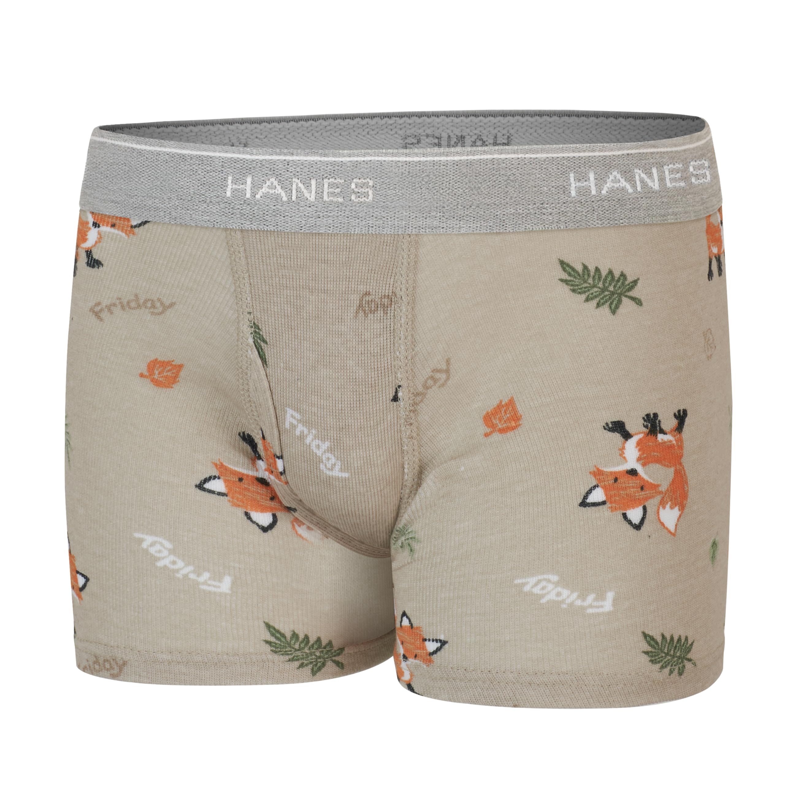 Description Hanes® boys' boxer briefs are offered in a variety of bold prints and solids for a style he’ll want to wear again and again. Built with comfort in mind, these boy’s boxers briefs offer a no-ride-up Tagless® design combined with a pinch-free Comfort Flex® waistband. lightweight Cool Comfort® fabric wicks moisture away, keeping him cool and dry even during his most active days. Hanes® multi-packs are always a great value, so stock up with this convenient 10-pack for even more amazing everyday options.