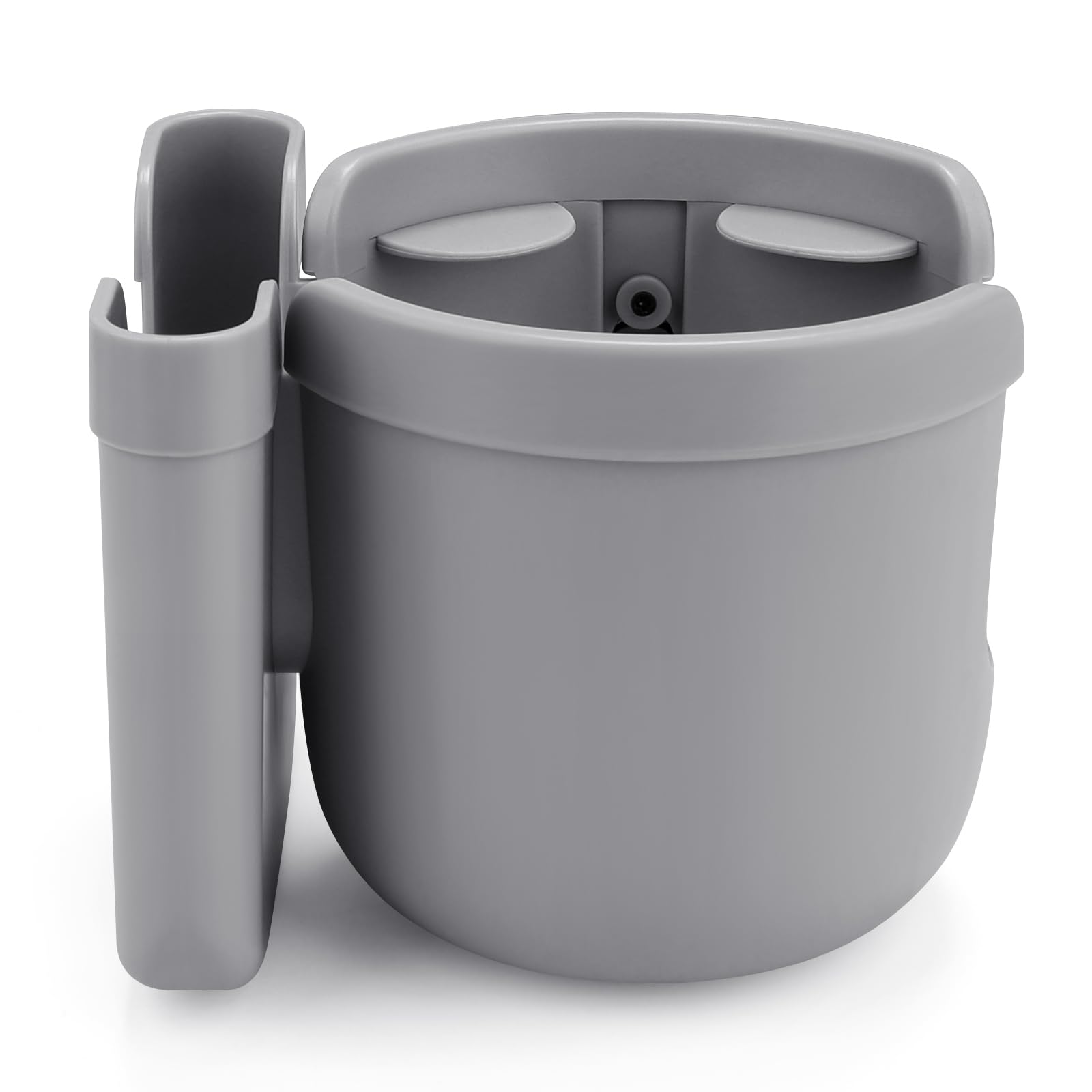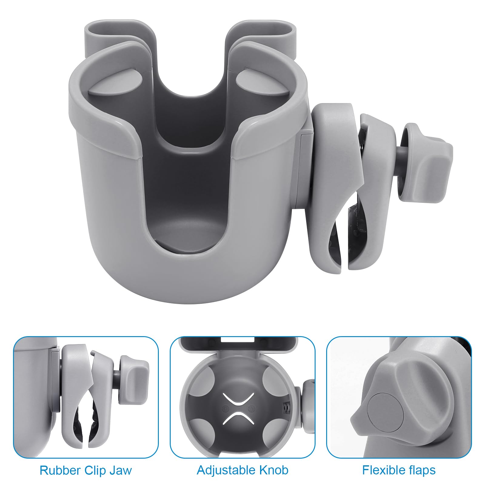 Easy to Use: This stroller cup holder attachment is made of durable materials. The ABS plastic and slip resistant rubber ensure the bottle keep steady even on the rough road. It is a "clip on" cup holder, you just need to clamp on anywhere you like. Easy to install or remove.