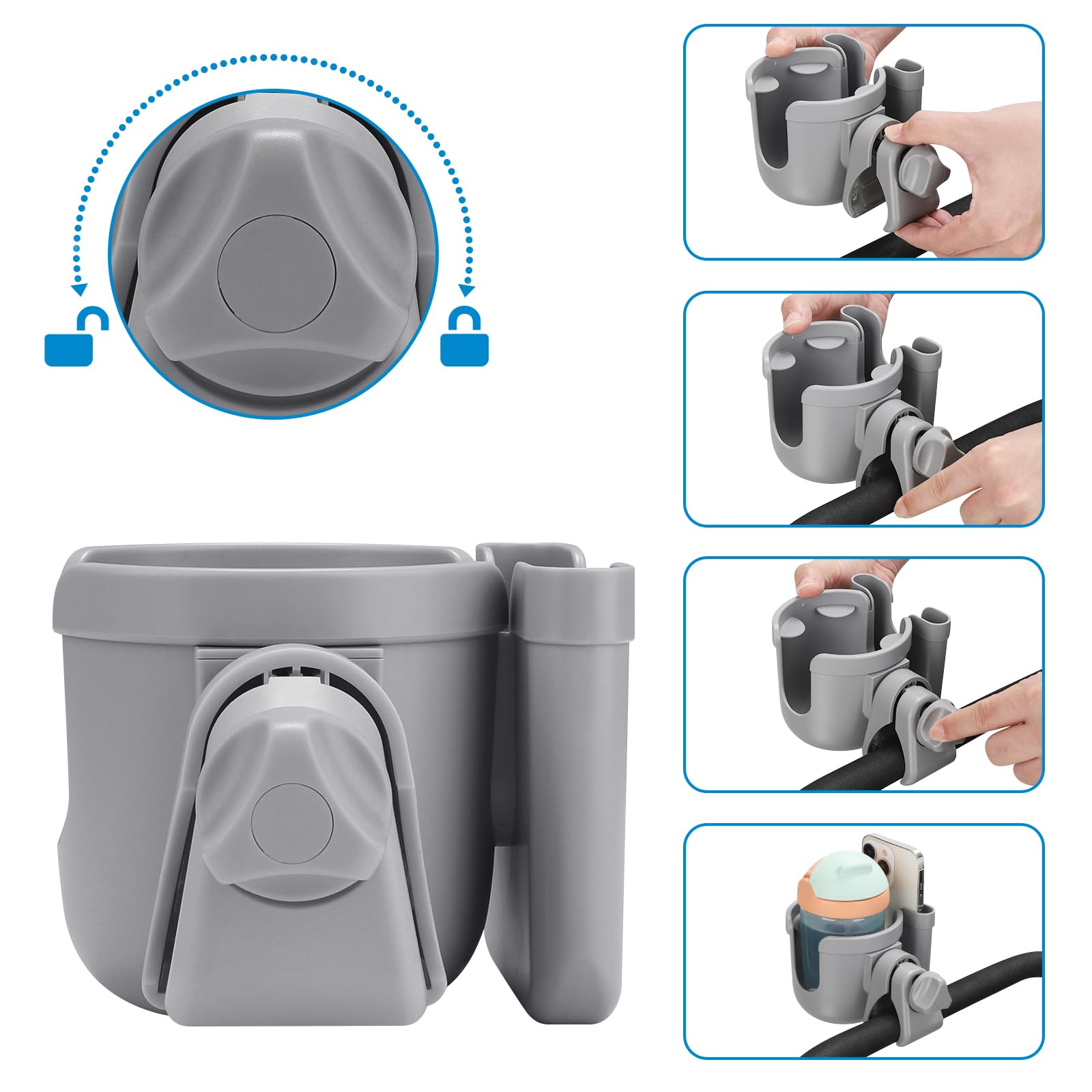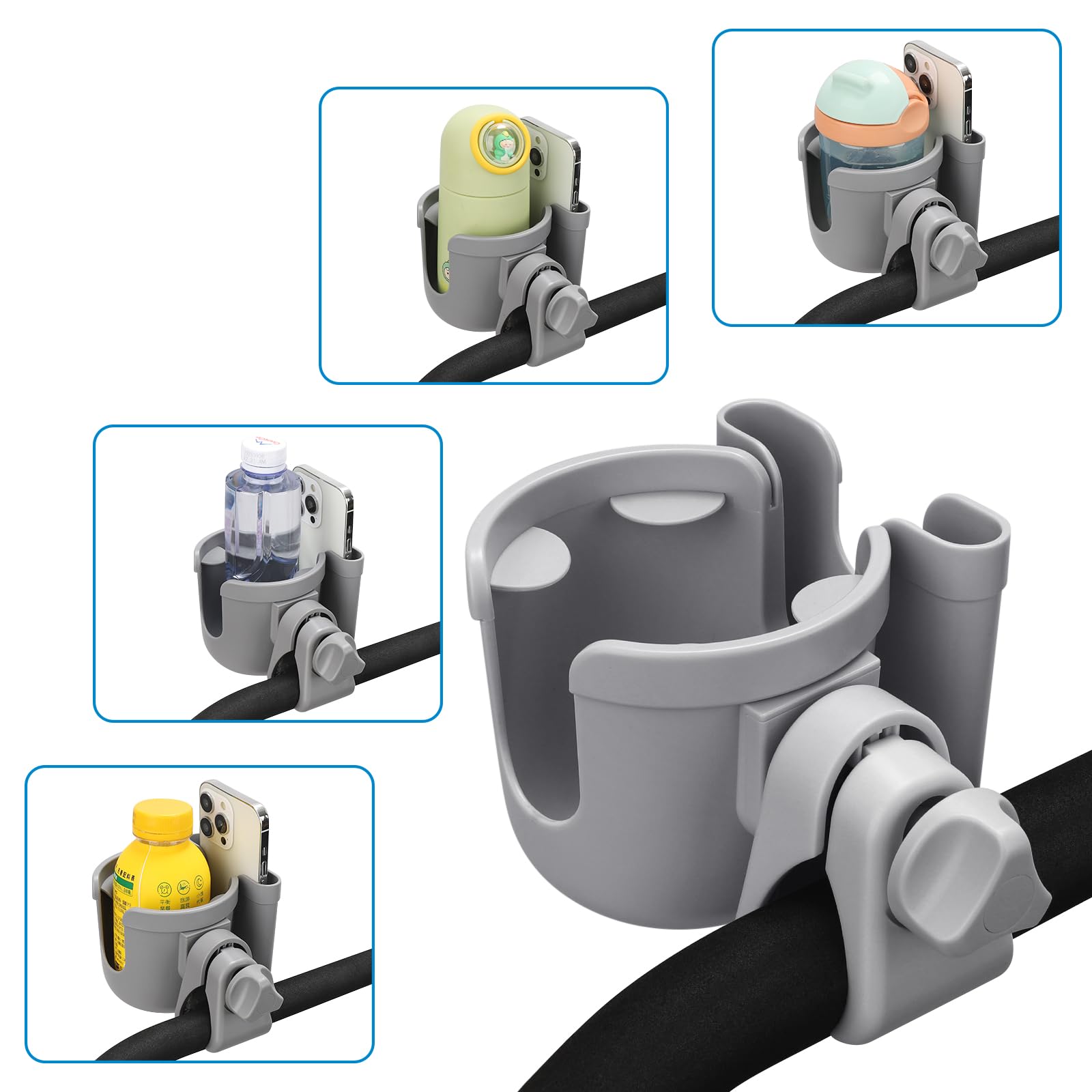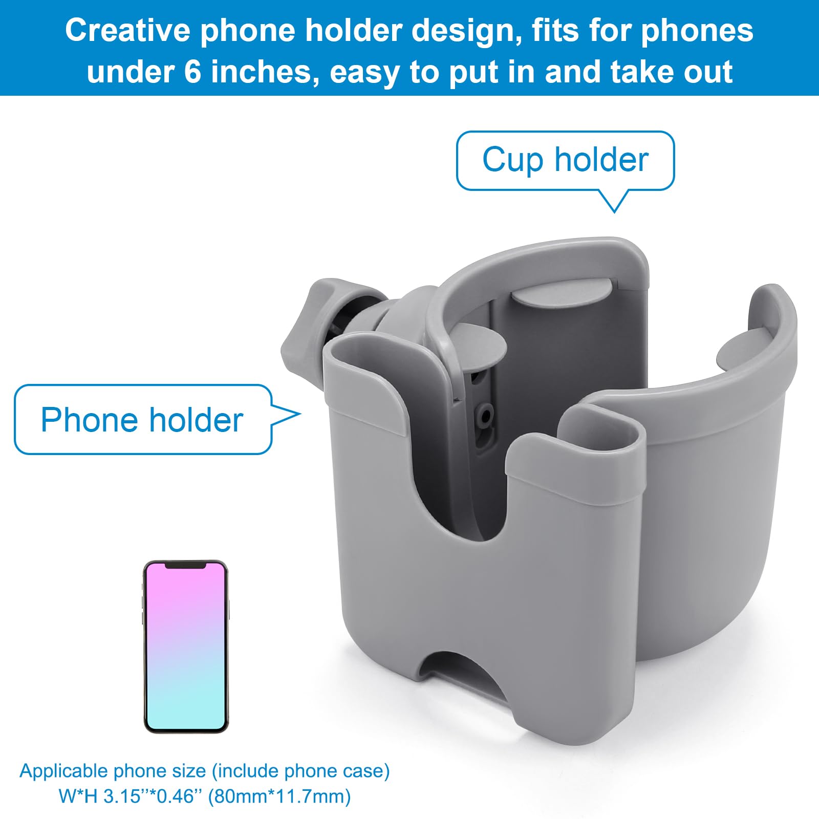 Wide Compatibility: This universal cup holder with phone holder compatible with most baby strollers, walker, wheelchair, rollator, bike, scooter, boat handle bar, shopping cart, kayak, ATV, lawnmowers, motorcycle, treadmill, golf push cart and so on.