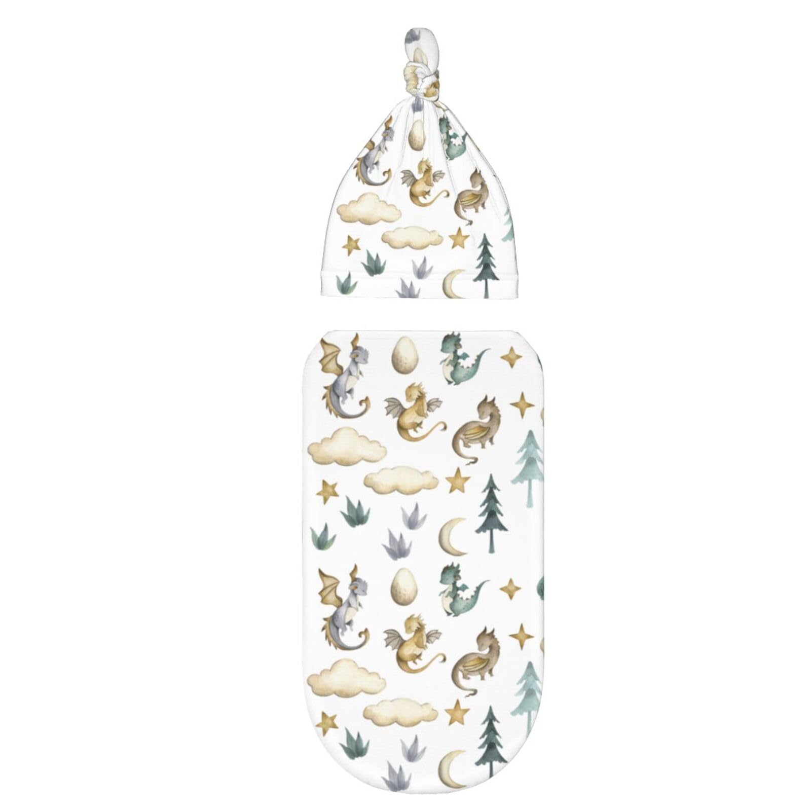 Cute Dragon Print Swaddle Blanket with Beanie Set, Cloud Moon Star Dragons Egg Swaddle Sack Newborn Sleeping Sacks for Girls Boys