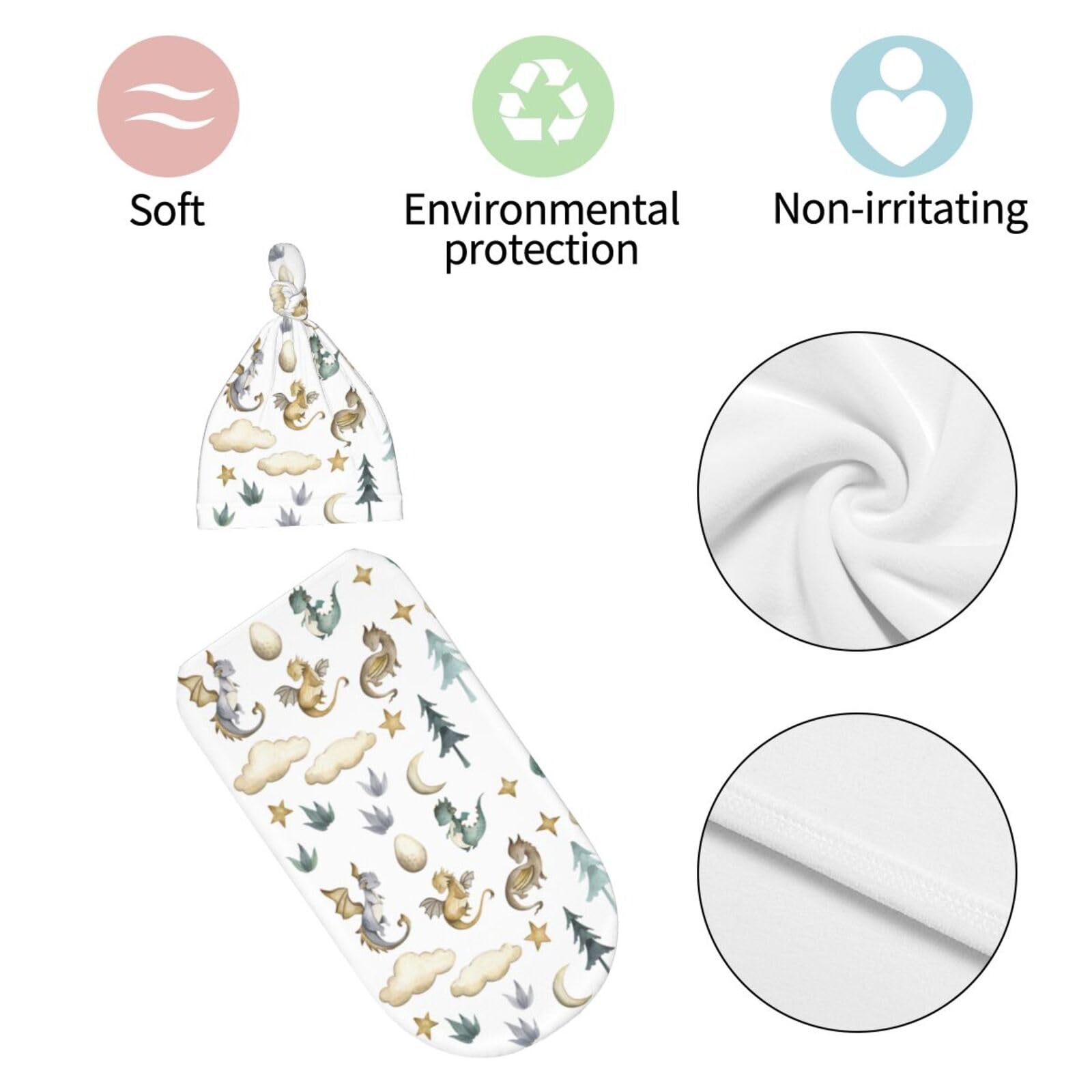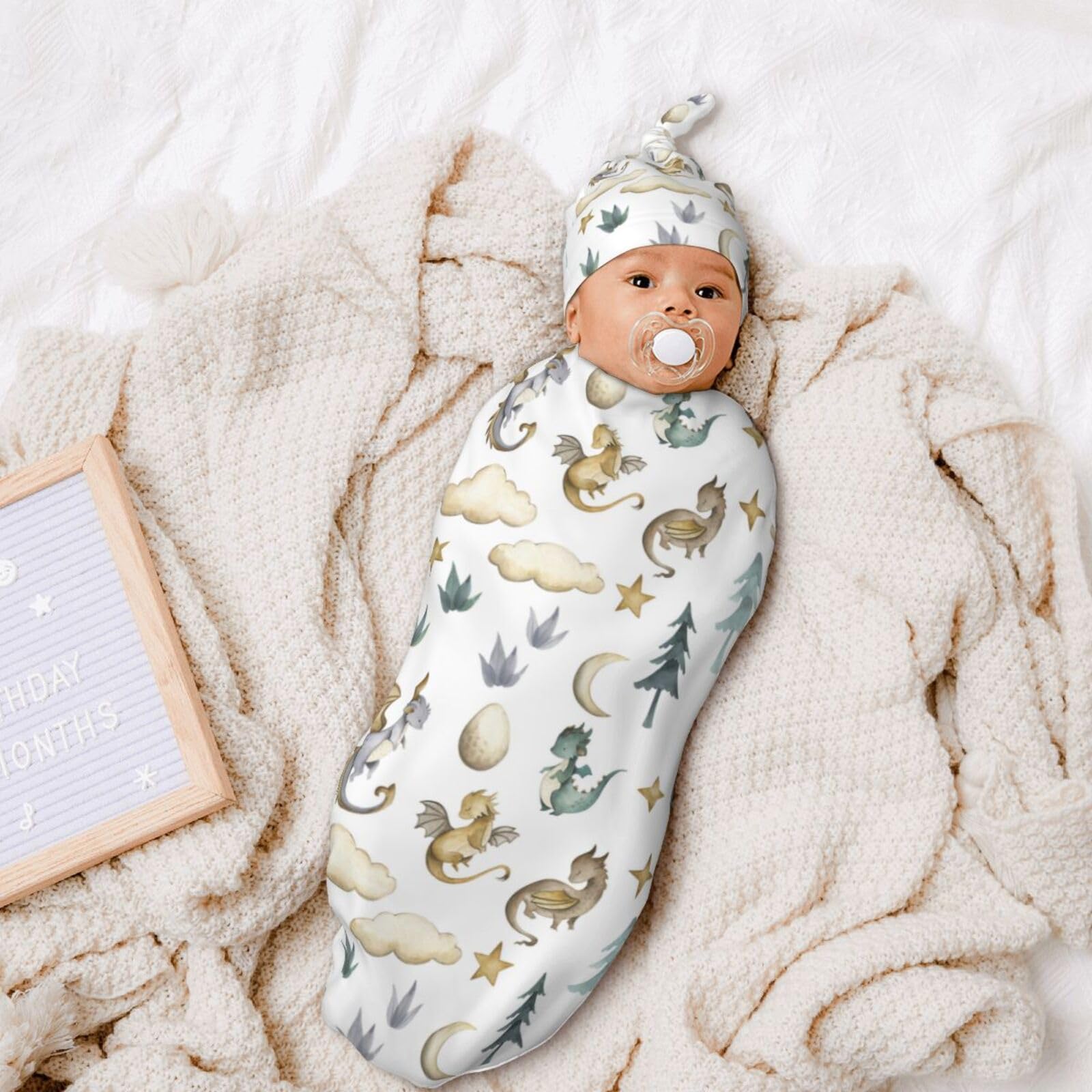 Perfect Size: Swaddle Blanket Is 11.4*20.8 In, Newborn Hat Is 6.5*13 In. This Dragon Swaddle Blanket Is Suitable For Babies Aged 0-6 Months. Beanie Hat Has An Adjustable Knot On The Top, Which Can Be Tightened Or Loosened As Needed To Ensure Comfort For Newborns