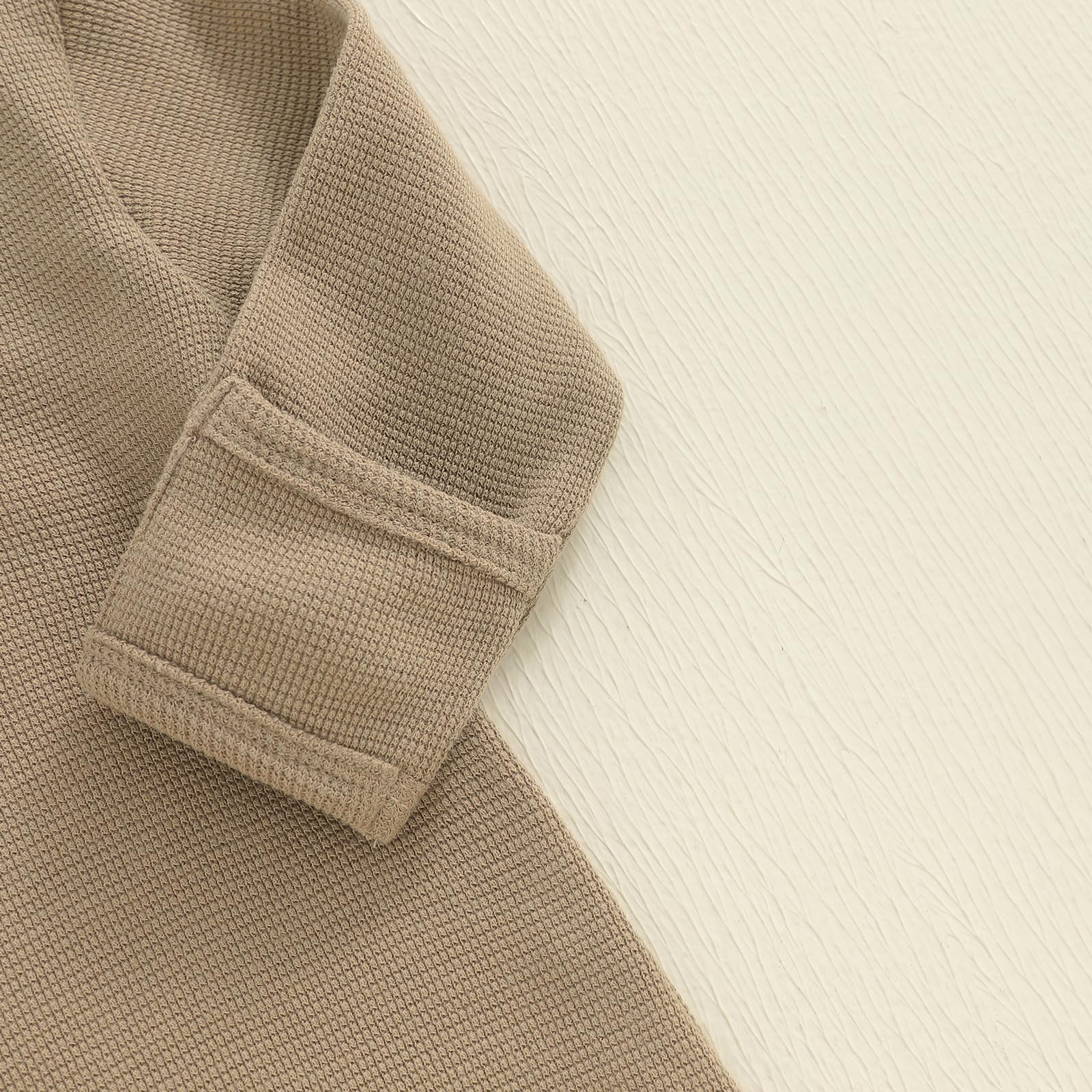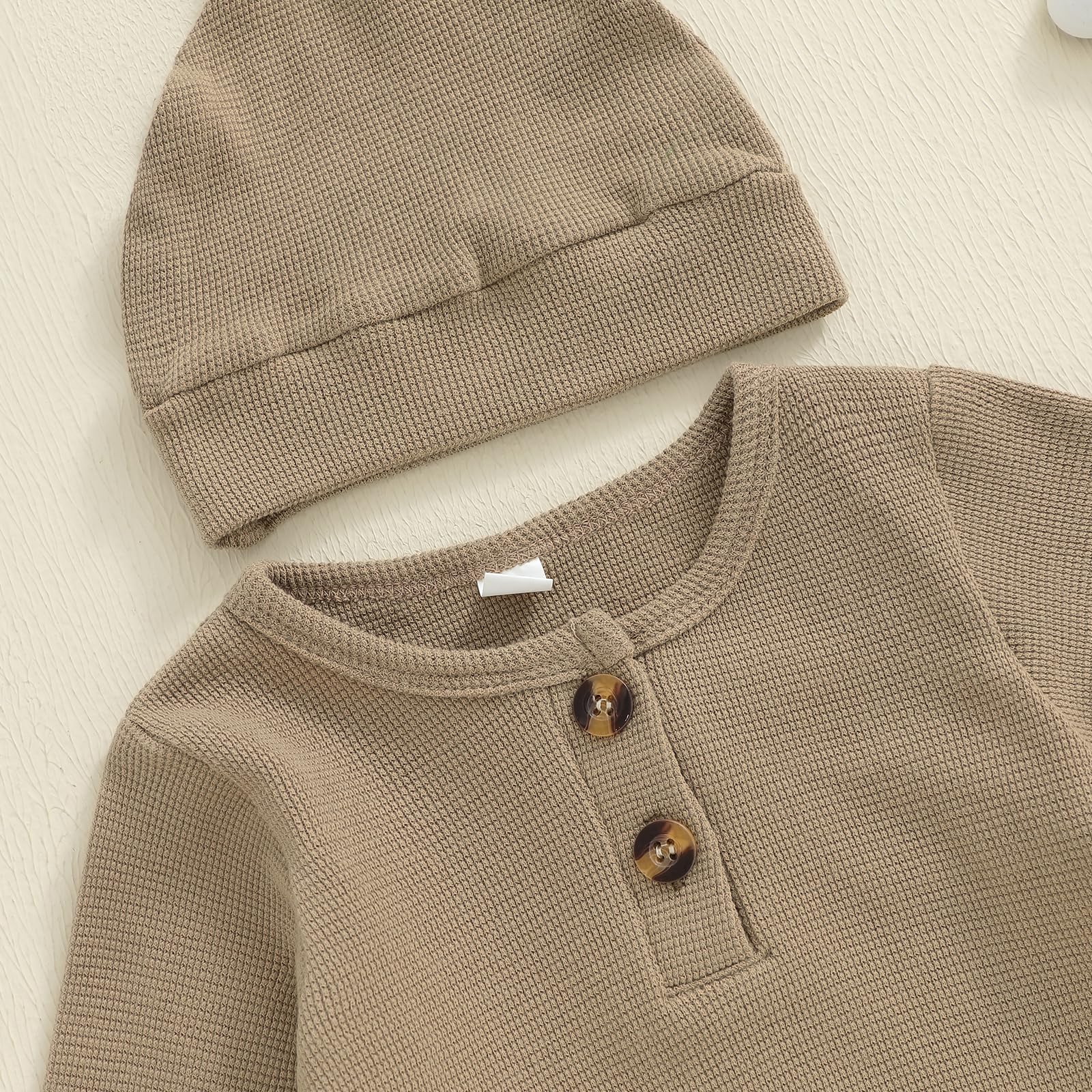 FEATURE: 2Pcs clothes set, a hat, long sleeve, zipper, buttons, ribbed knit, solid color, round neck, fall and spring outfits.