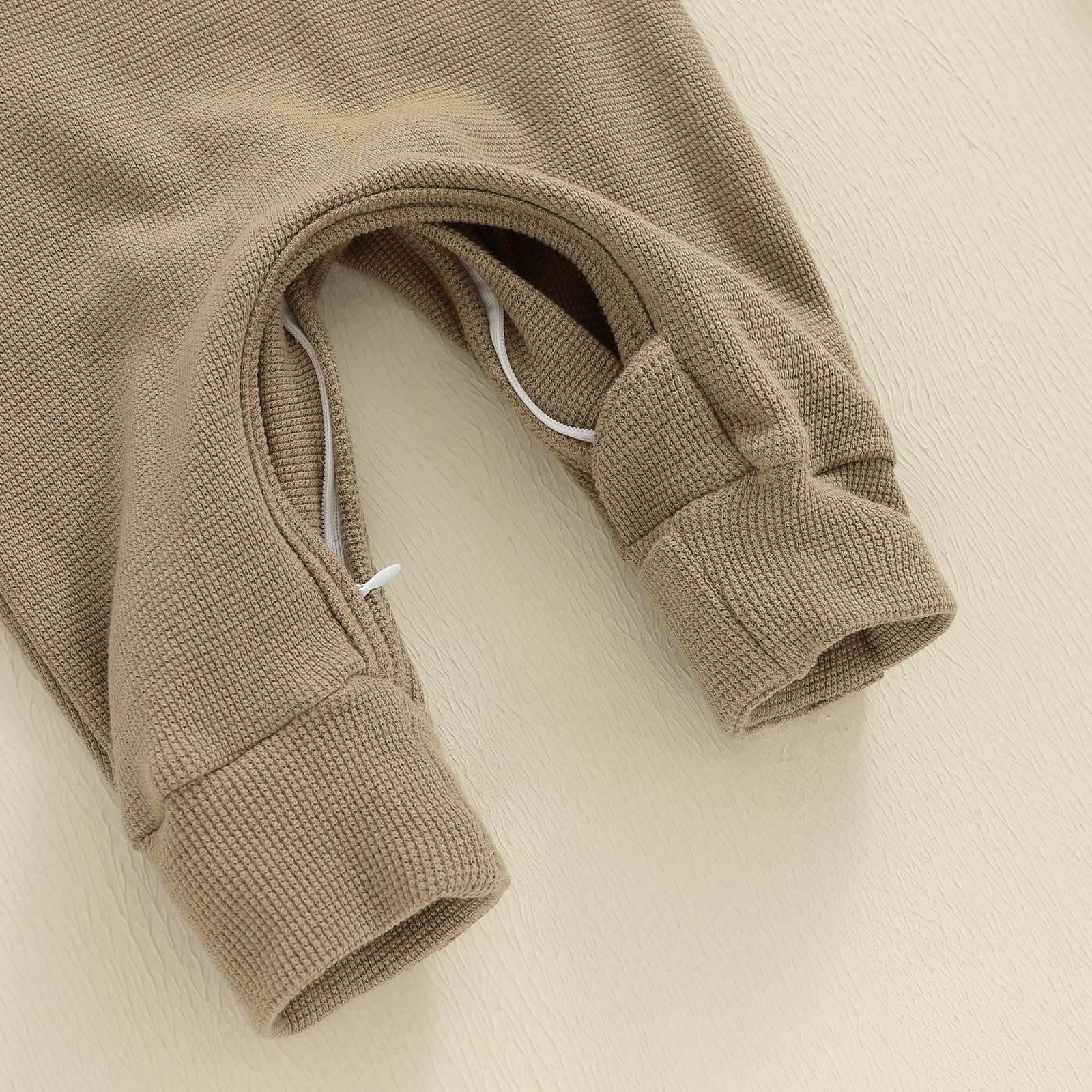DESIGN POINT 1: The open-crotch is zipper not snap, it will be more convenient. DESIGN POINT 2: Built-in Mittens, reversible mitten hand covers to prevent baby from scratching themselves.