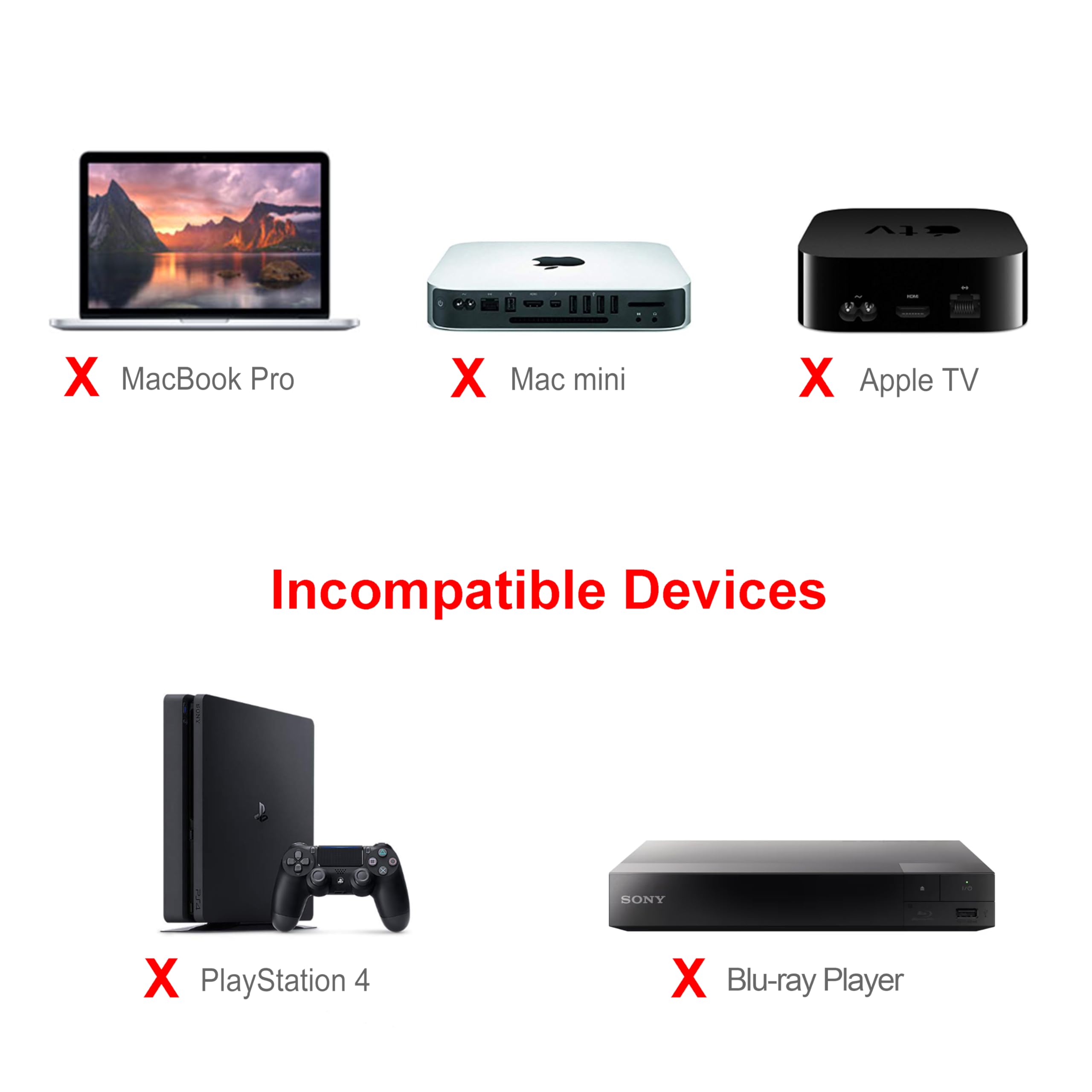BROAD COMPATIBILITY: The HDMI-VGA adapter is compatible with computer, pc, desktop, laptop, ultrabook, notebook, Chromebook, Raspberry Pi, Intel Nuc, PS3, Xbox One, Xbox 360, Wii U, Set Top Box, TV BOX, or other devices with HDMI port; *NOT COMPATIBLE* with Blu-ray player and devices with low-power HDMI ports such as SONY PS4, Apple MacBook Pro with Retina Display, Mac mini, and Apple TV