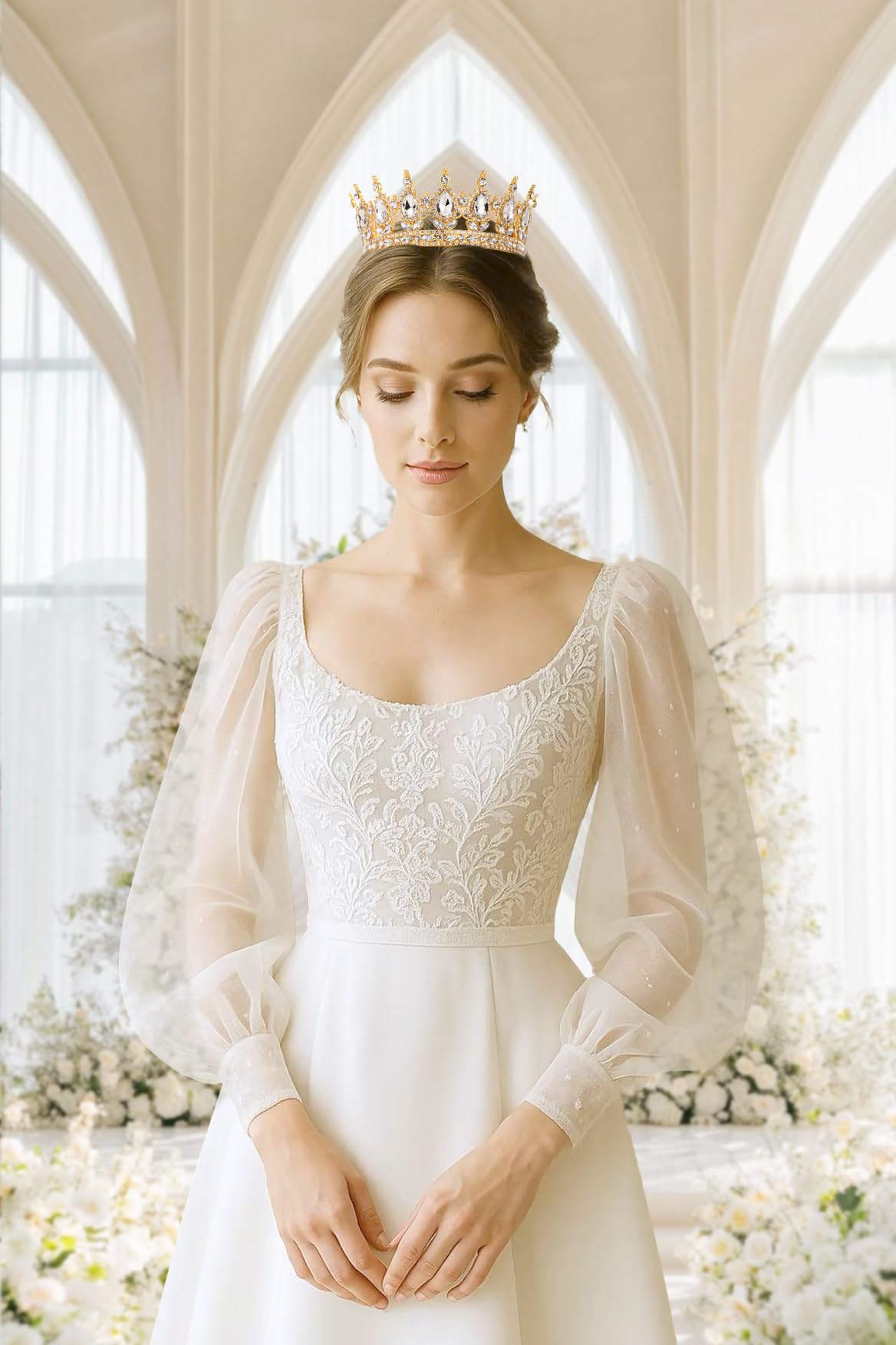 One Size Fits Most: Our crown is gold and measures approximately 2.76 inches (7cm) tall and 5.71 inches (14.5cm) in diameter. Specially designed to fit women's head size, suitable for adults, perfectly fit your charming hairstyle and face shape.