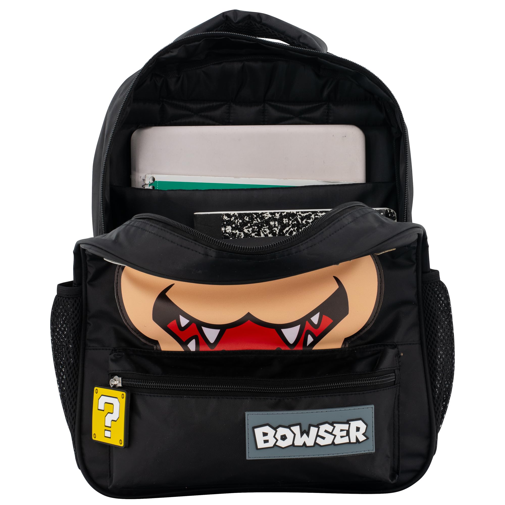 Description Super Mario Bros. takes place after the events of Mario Bros. as Mario and Luigi had traveled through one of the Warp Pipes from New York City's sewers and arrived in the Mushroom Kingdom. You are Mario! It's up to you to save the Mushroom People from the black magic of the Koopa!" The Super Mario Brothers video game by Nintendo remains the most popular gaming franchise in the world. Take your gaming to the next level with this fun novelty backpack featuring everyone’s favorite antagonist, Bowser. The backpack is made from durable water-resistant nylon twill . The backpack has 2 side mesh pockets for extra storage and padded back & adjustable padded straps for extra comfort. Great for school, travel, sleepovers, and camp, this kids backpack will be used all year long.