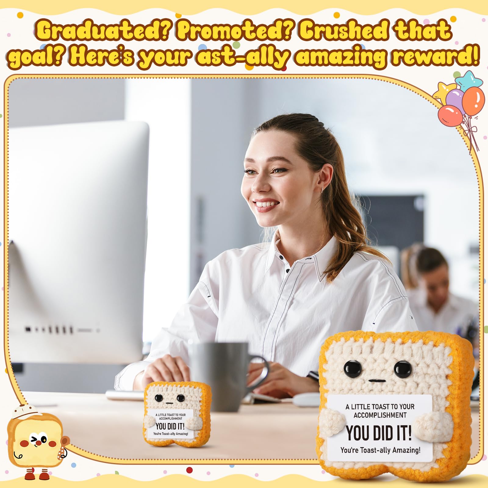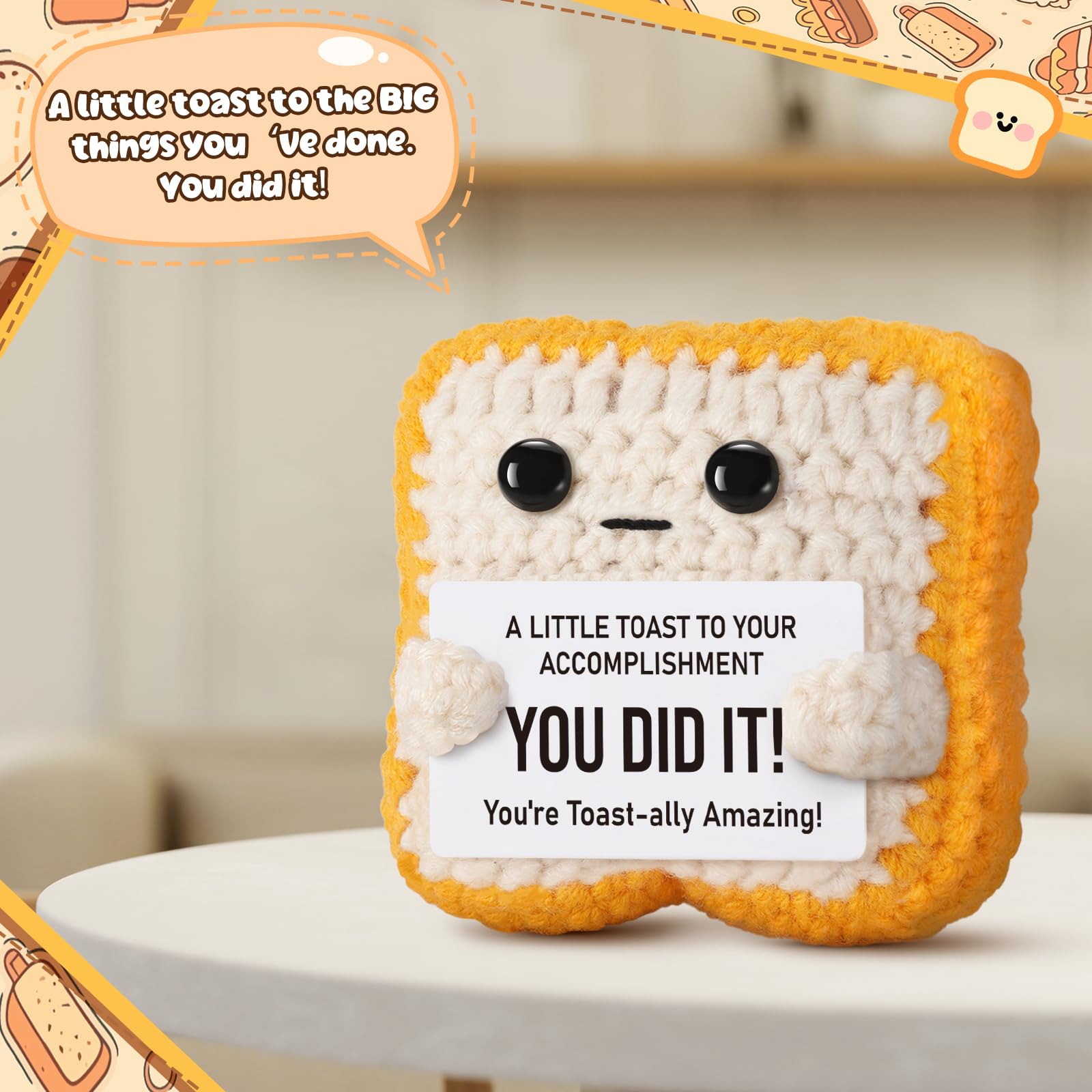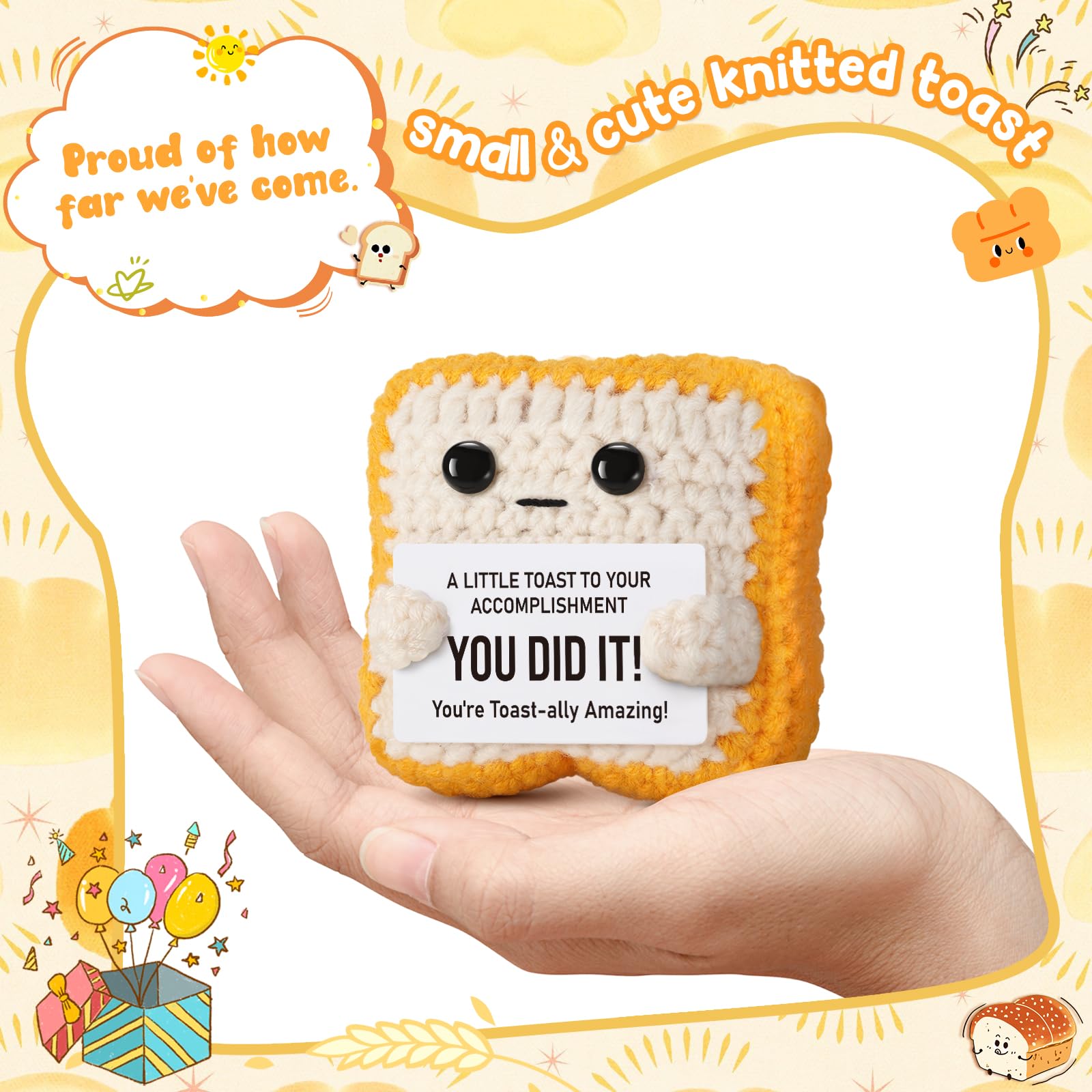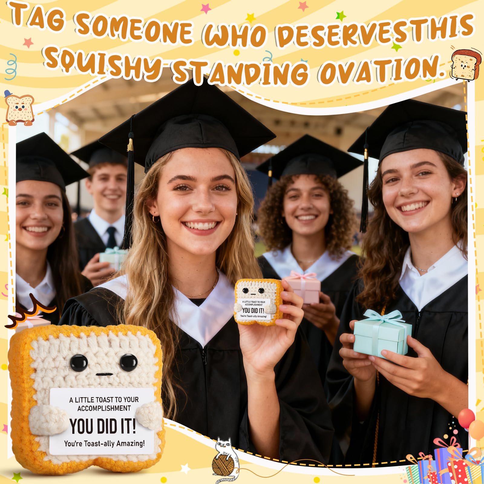 Unique Gift for All Occasions: Ideal for graduation, passing exams, promotions, back-to-school, or just because. Knitted toast can be as funny and gag women gifts men gifts or girls gifts boys gifts; As gifts for kids adults teens, suitable for various age groups, A thoughtful token for your daughter, son, best friend, or favorite teacher.