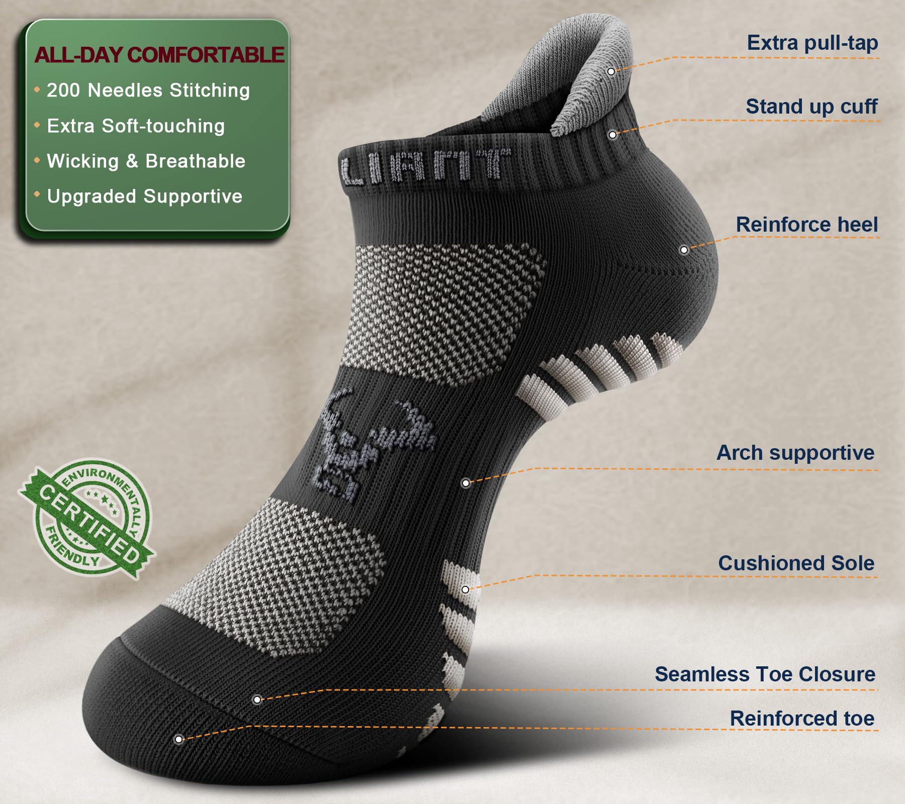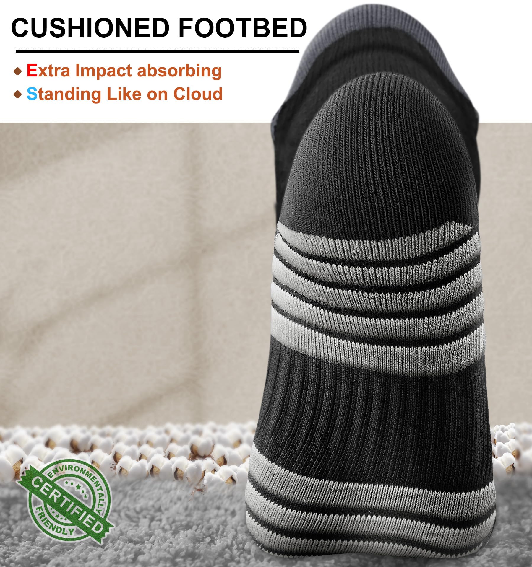 CUSHIONED FOOTBED--Experience superior comfort and support with our socks; The full-circle terry cushioning provides excellent bounce and shock absorption,making every step a delight;