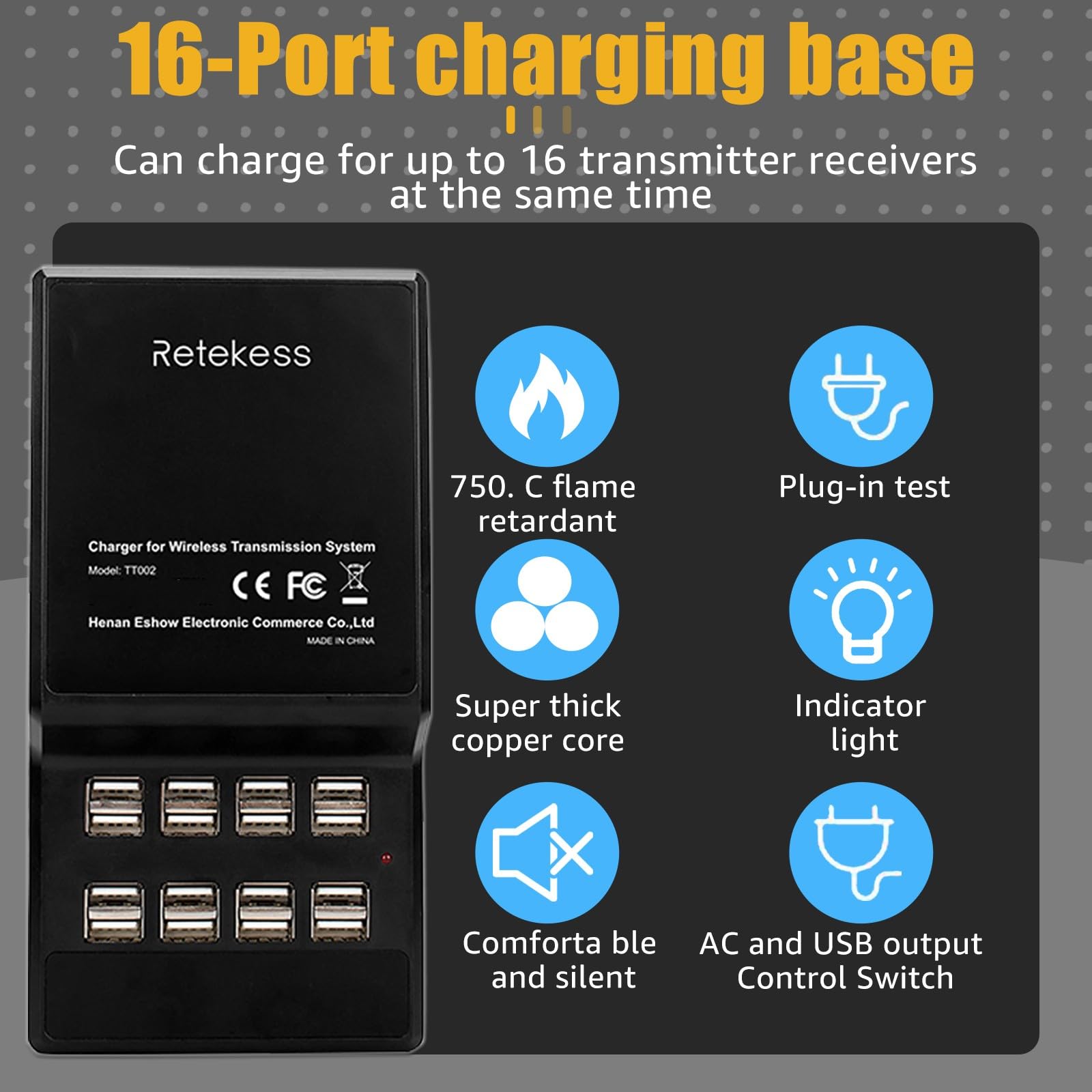 USB Powered Devices: can charge for up to 16 receivers or transmitters simultaneously; overcharge protection charges safely; LED Indicator; the led indicator lets you know the power is active while does not cause bright light in the dark