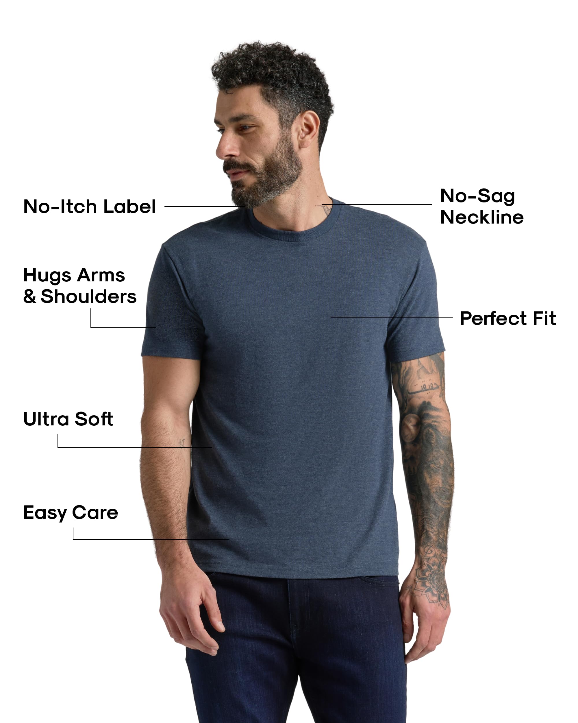 ALL-DAY SOFT COMFORT: Our mens cotton t shirts are crafted from a 60% cotton and 40% polyester blend, these tee shirts men love are breezy, breathable, and super soft—perfect mens tshirt pack for work or the ideal black t-shirt men need for downtime.