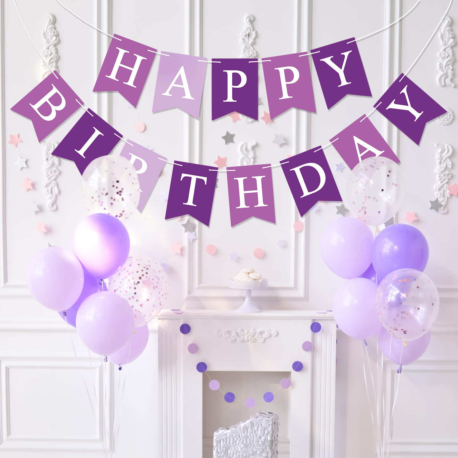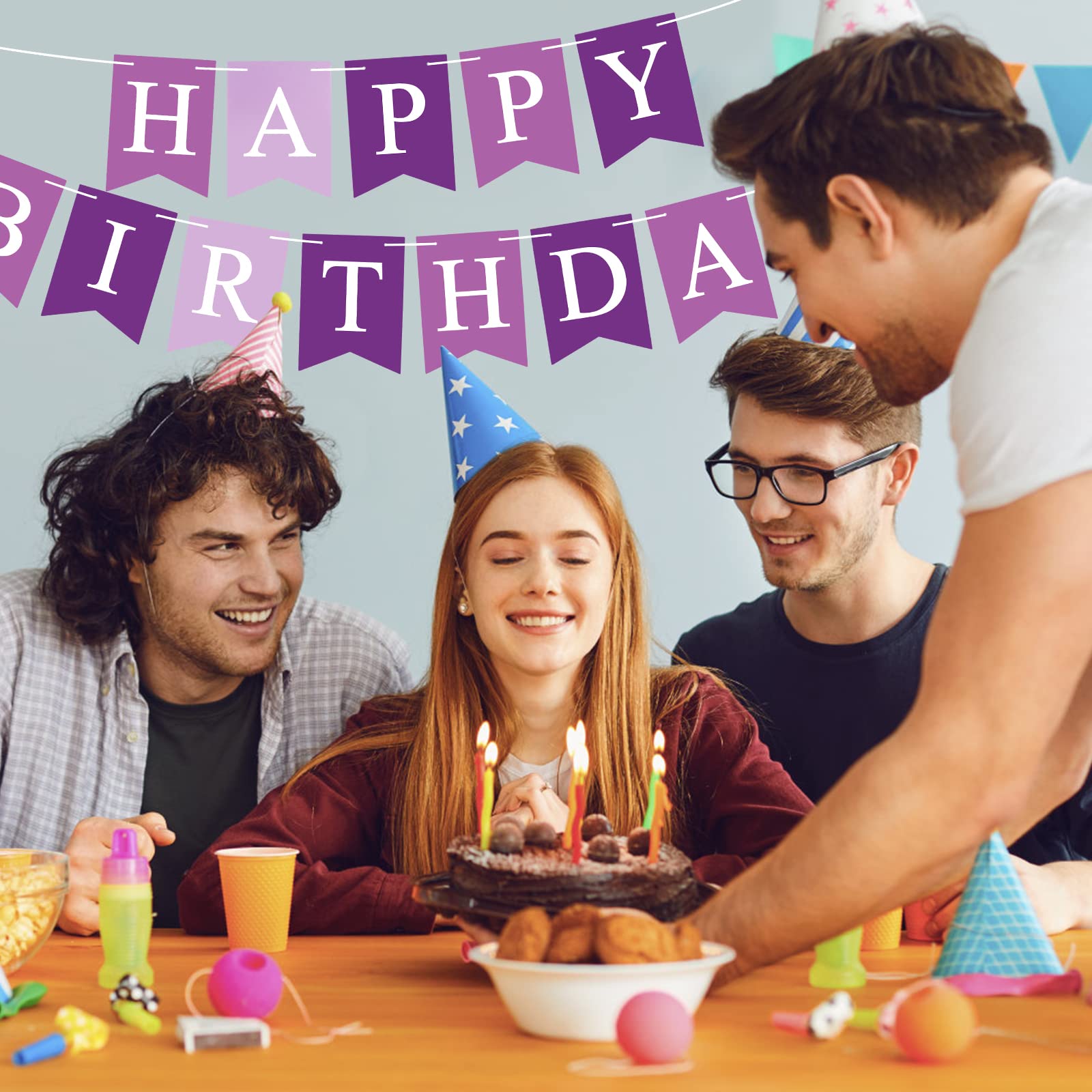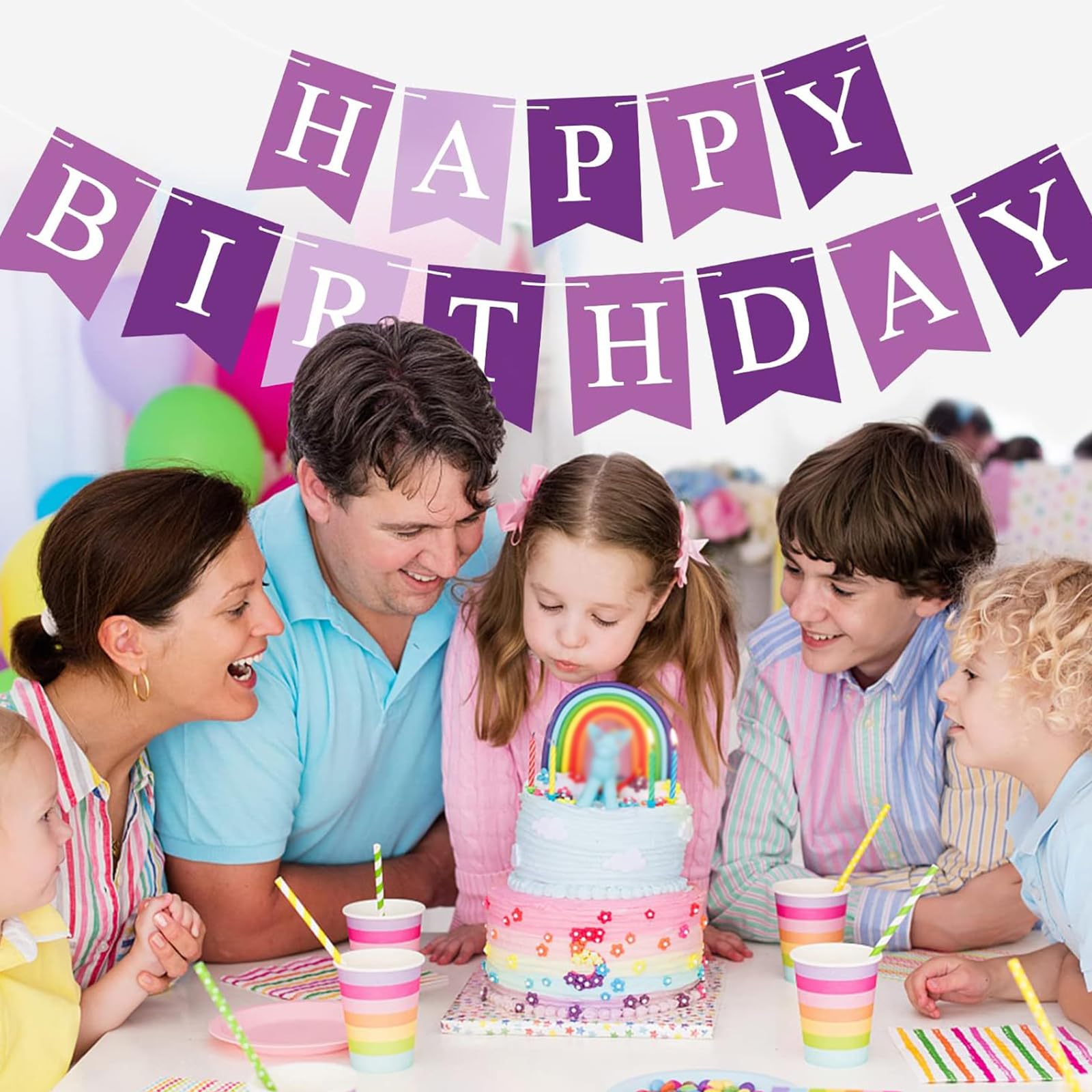 HIGH QUALITY: Made of high-quality cardstock paper, resistant and reusable. Lovely and lively colors add luster to the space decoration. Happy birthday banner purple easily fit any wall, fireplace, gift table, buffet table, garden, living room, family room, banquet hall, indoor or outdoor.