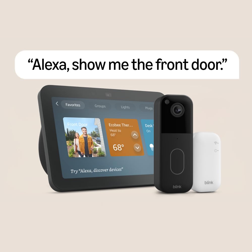 INSTANT ALERTS & EASY CONTROL: See visitors instantly on Echo Show 8's display with Blink Video Doorbell’s motion alerts and head-to-toe HD live view — answer your door with simple voice commands or screen touches from anywhere in your home.