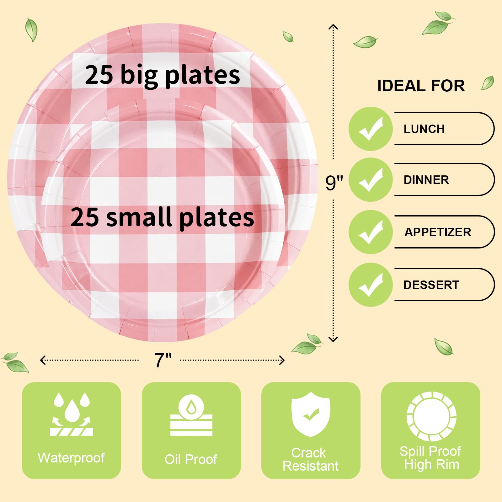 What's Included: Paper plates set includes 25- 7" dessert plates and 25- 9" large party plates.