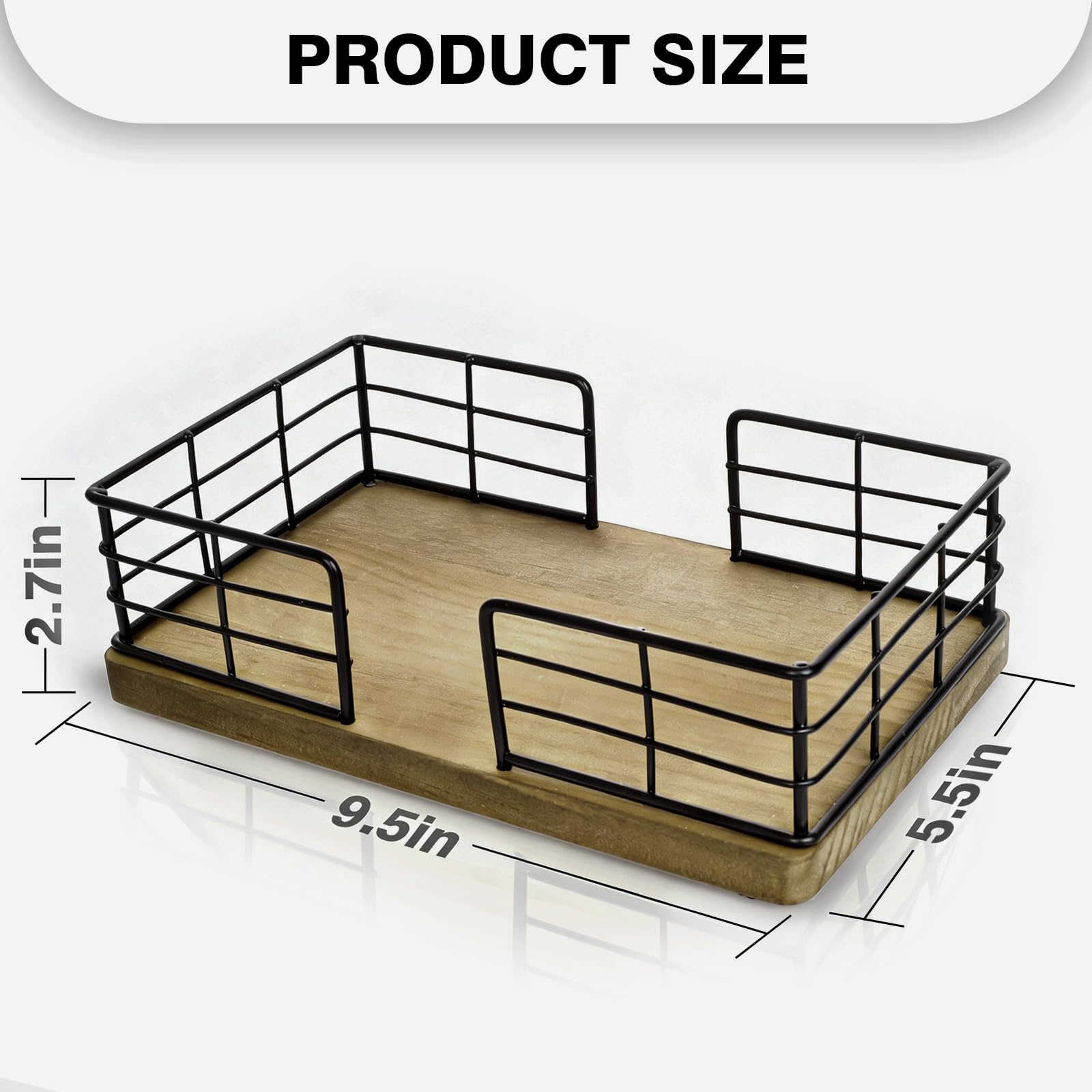 🍃【HIGH-QUALITY MATERIAL, THICK BAMBOO】The bathroom napkin holder tray is made of high-quality bamboo, thickened material, not easy to break. Not only the appearance is simple and elegant, the texture of the product can surprise you just as much! Product size is: 9.5*2.7*5.5in